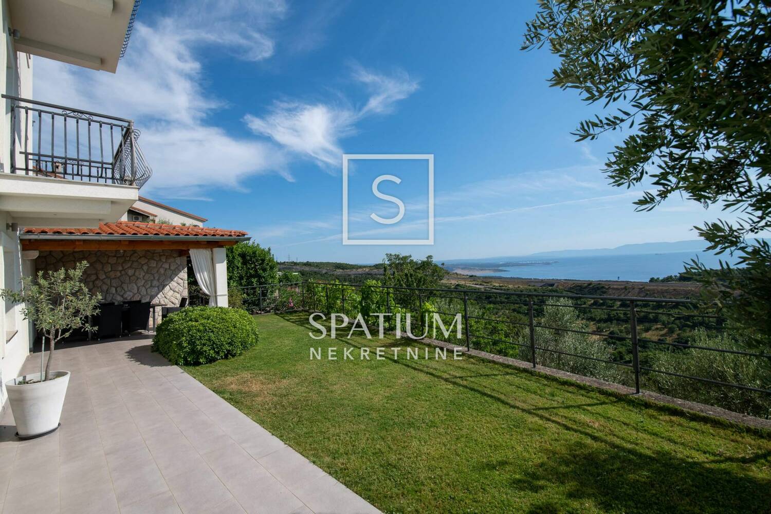 Prostrano sunčalište sa bazenom koje pruža savršeni pogled na more i cijeli Kvarner.