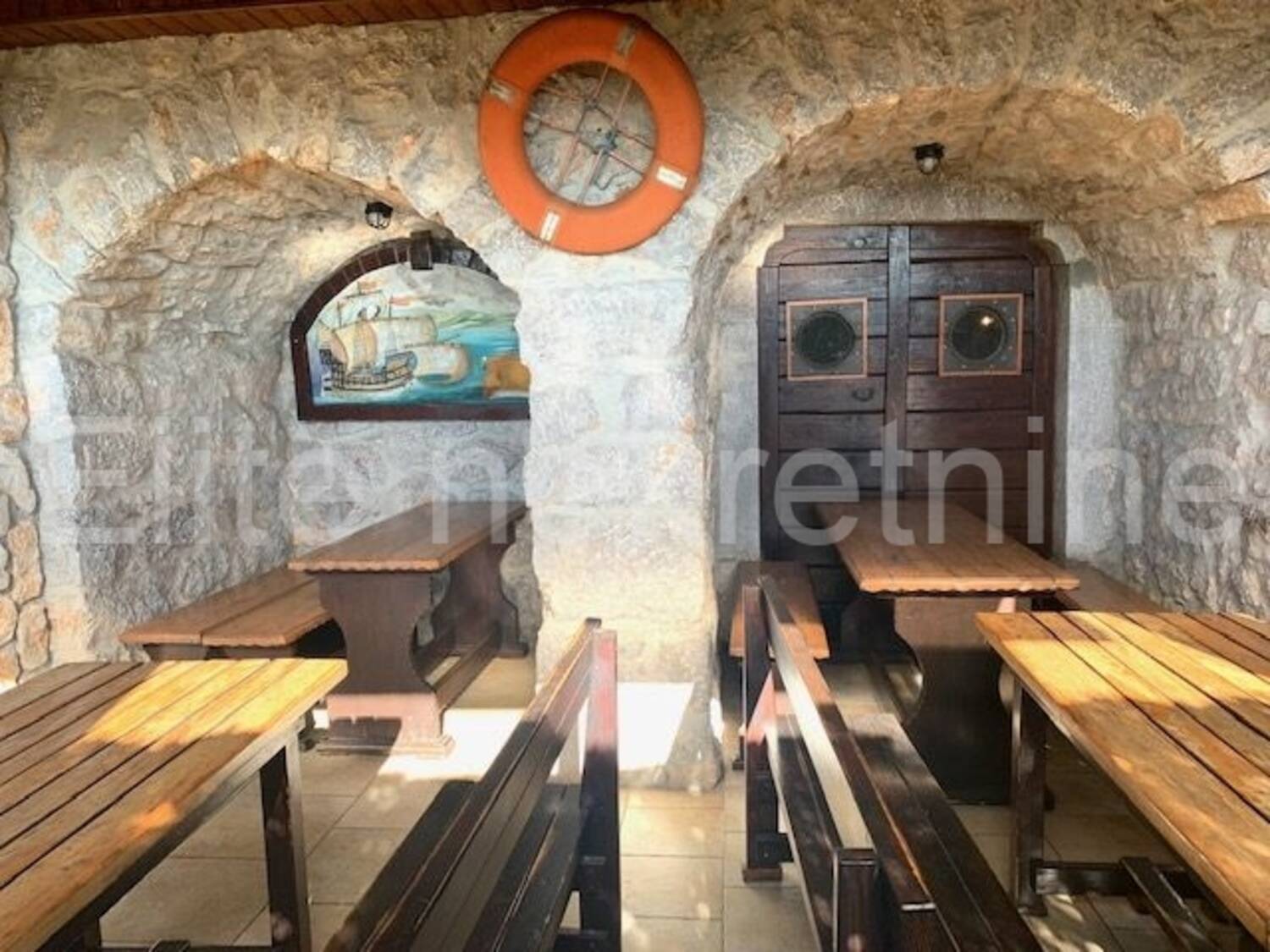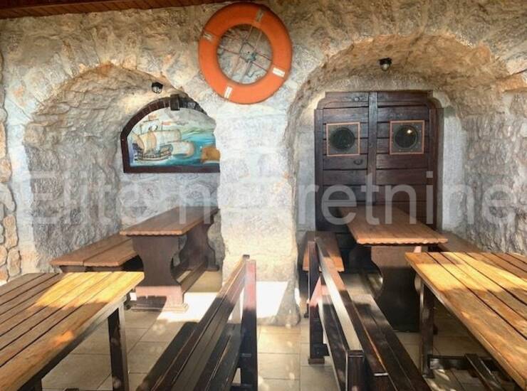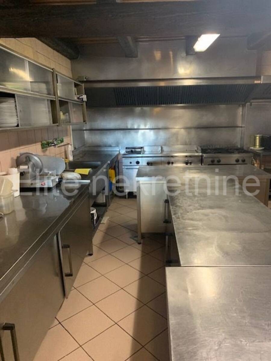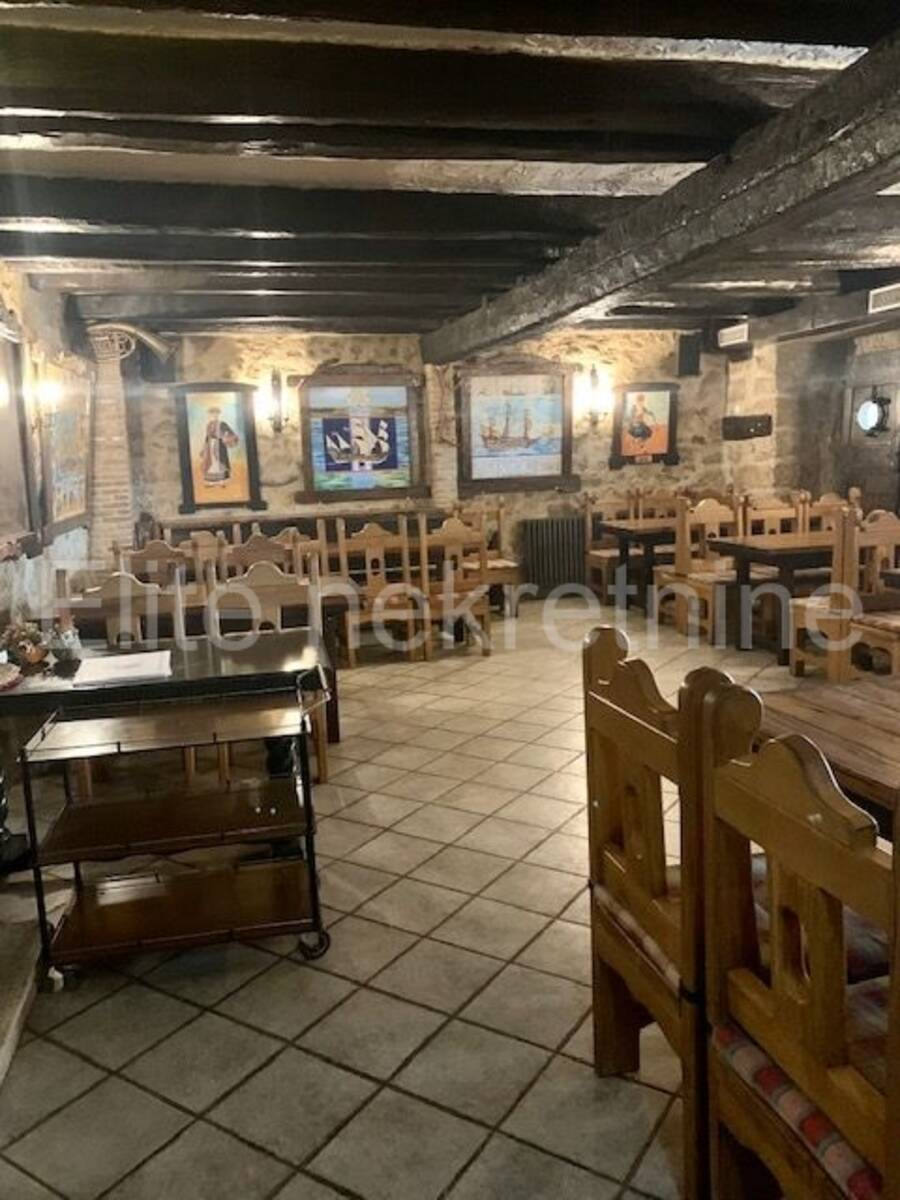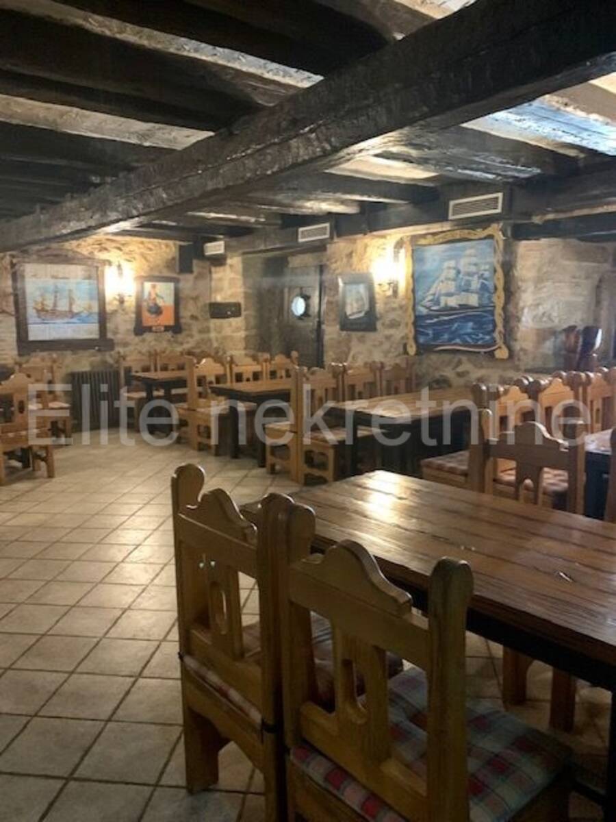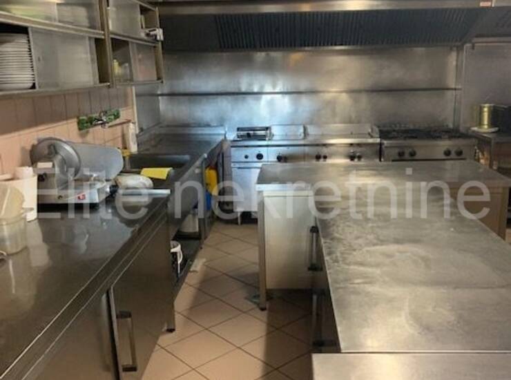 Kompletno je opremljen sa svim inventarom, te se sastoji od šanka, toaleta, 2 prostrane sale, komercijalne kuhinje opremljene kvalitetnom opremom, skladištem za robu, svlačionice i sanitarnog čvora za radno osoblje.
