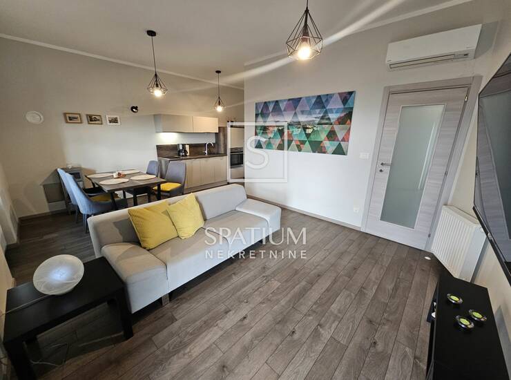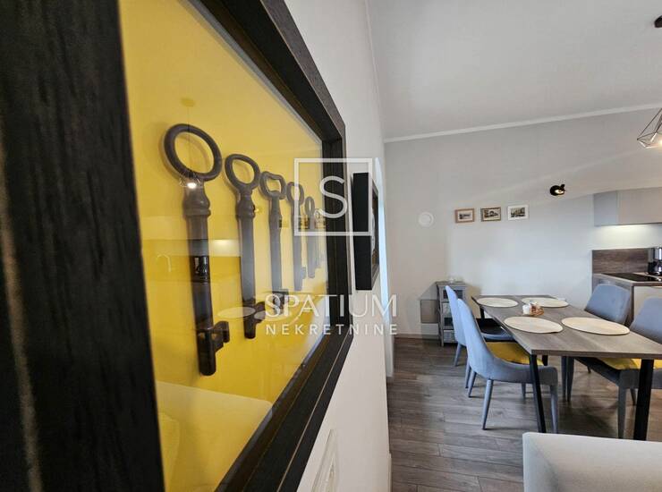 Ovaj stan spaja udobnost modernog života i toplinu mediteranskog doma, s predivnim pogledom na more i obiljem prirodne svjetlosti.