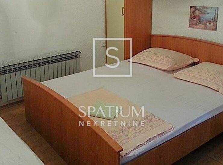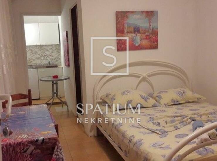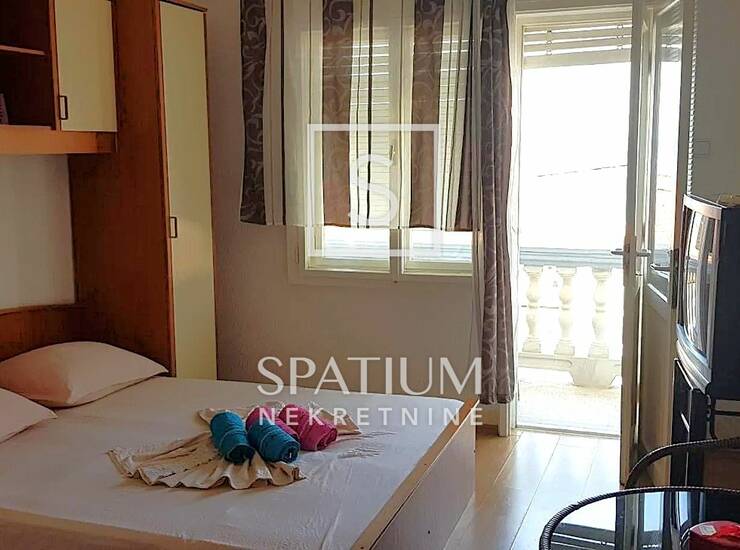 CRIKVENICA, u ponudu smo dobili nedaleko strogog centra apartmansku kuću sa devet apartmana. Sastoji se od prizemlja u kojem se smjestio jednosobni apartman sa velikom terasom te garaža koja je pretvorena u garsonjeru. Na katu su tri garsonjere i jedan dvosobni apartman. Jedna garsonjera ima zasebnu terasu, dok druga garsonjera i dvosobni apartman imaju izlaz na balkon sa kojega se pruža pogled na more i otok Krk. Na sjevernoj strani parcele nalazi se pomoćni objekt koji je 2006 godine pretvoren u dodatna tri apartmana. Odlične gradnje, građena je primorskim kamenom. Ima centralno grijanje na lož ulje, a svaki apartman ima svoju vlastitu klimu. Plaže i sadržaji su na udaljenosti svega 300m. Navedena cijena od 180 € odnosi se na najam po radniku.
