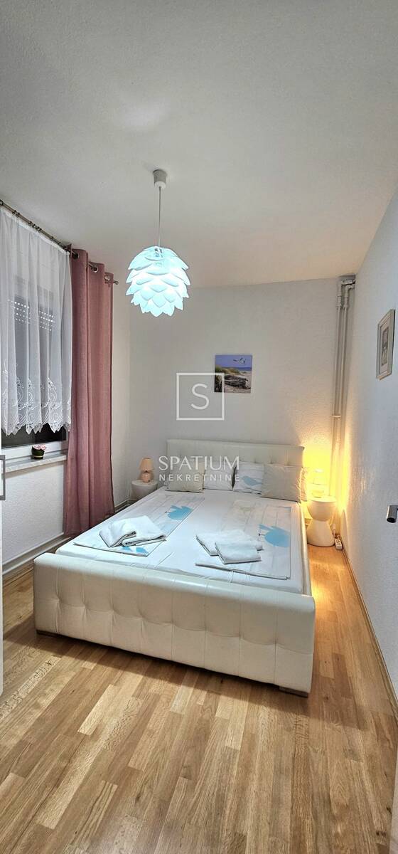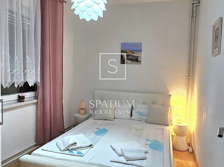 Novouređen, potpuno namješten i moderno opremljen kvalitetnom tehnikom, funkcionalnog rasporeda. Nekretnini pripada jedno parkirno mjesto i spremište od 3.56 m2. Radi svoje mikrolokacije, blizine mora i svih bitnih sadržaja idealna je prilika za obiteljsko dugoročno stanovanje. Troškovi režija plaćaju se po potrošnji.