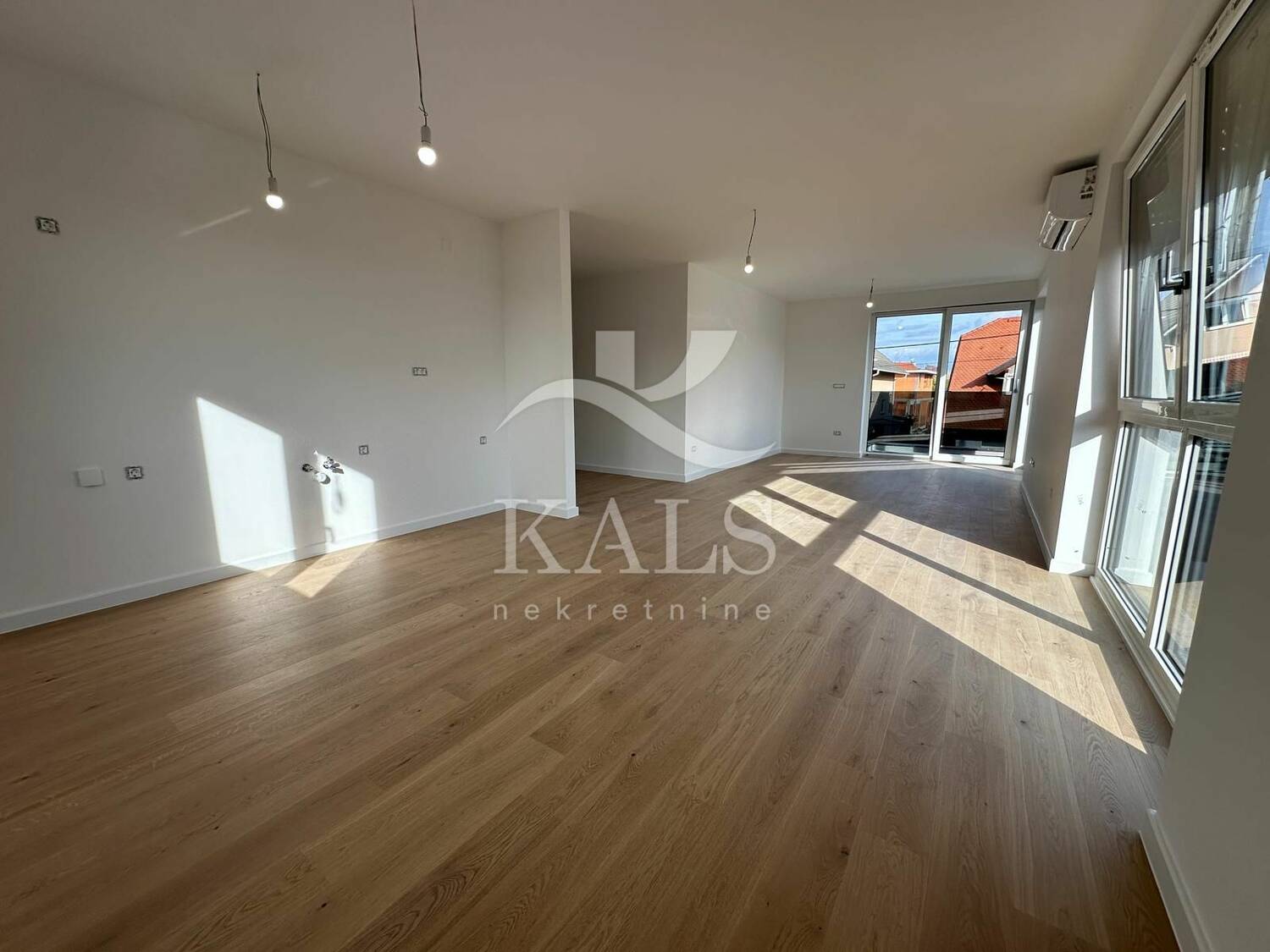 Iznajmljuje se trosoban stan kao poslovni prostor neto površine 106 m2 ( bruto površine: stan 104 m2, terasa 7 m2) na prvom katu zgrade bez lifta. Zgrada je napravljena 2025. godine i ima ukupno dva kata.