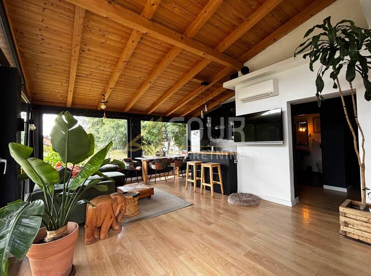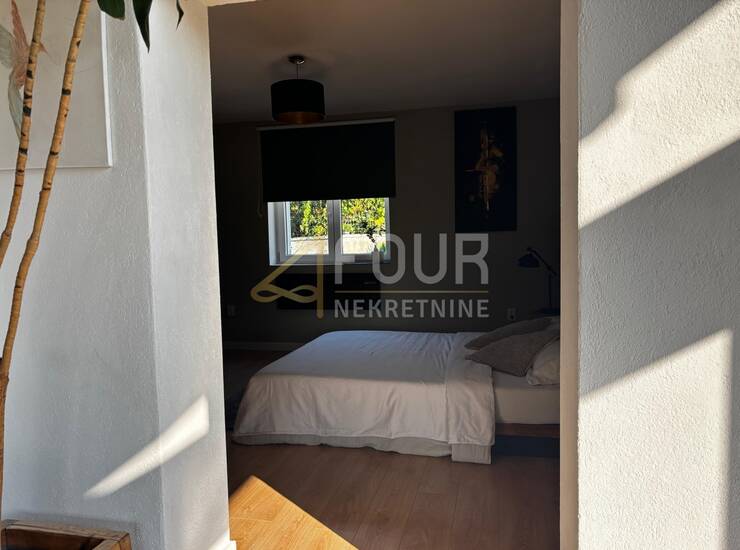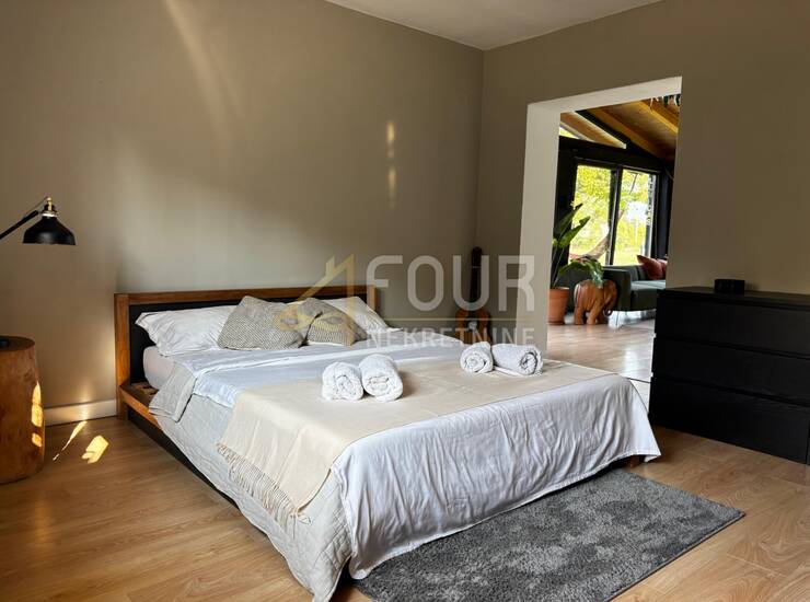 Iznajmljuje se stan na Grobniku u Podhumu, površine 80 m2. Sastoji se od dvije spavaće sobe, kupaonice te kuhinje povezne s prozračnim i svijetlim dnevnim boravkom. Velika klizna staklena stijena vodi na terasu i na okućnicu od 100 m2, gdje su posađeni bambus, masline, smokve i drenjula, stvarajući mirno i zeleno okruženje idealno za odmor i opuštanje. Opremljen je s peći na drva, klimom i Glamox radijatorima, a vanjska parkirna mjesta dodatno olakšavaju svakodnevicu. Privatnost, sigurnost i mir čine ga savršenim za obitelji s manjom djecom i kućne ljubimce.