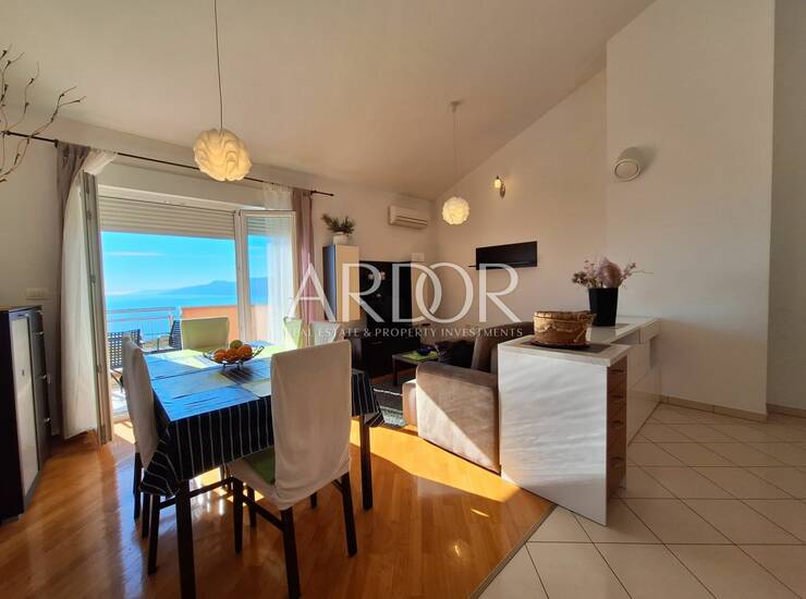 U mirnom i uređenom dijelu Kastva, u zgradi novije gradnje s energetskim certifikatom A+, dostupan je za najam predivan stan površine 85 m² koji oduševljava prostranošću, svjetlom i spektakularnim pogledom na more. Smješten na drugom katu, ovaj stan pruža savršen spoj modernog dizajna, funkcionalnog rasporeda i potpune privatnosti.