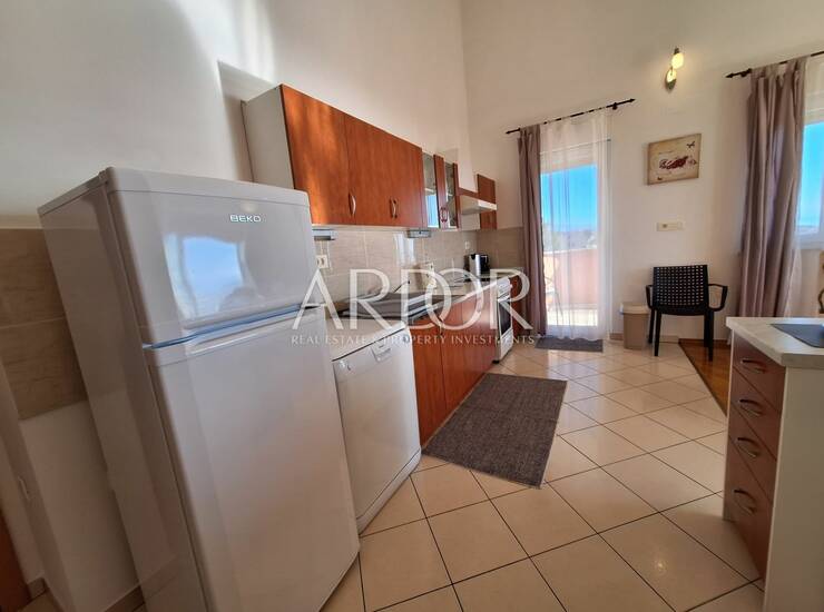 Središnji dio stana zauzima veliki open-space dnevni boravak povezan s kuhinjom i blagovaonicom, iz kojeg se izlazi na prekrasan balkon u obliku slova L. Balkon nudi neometan pogled na more, idealan za jutarnje kave, druženja ili uživanje u zalascima sunca.