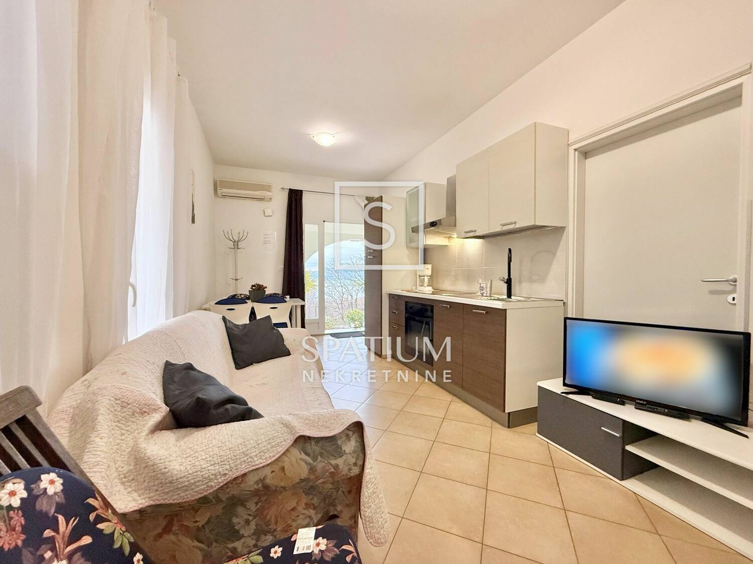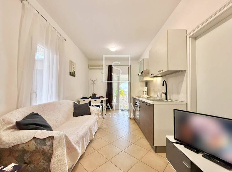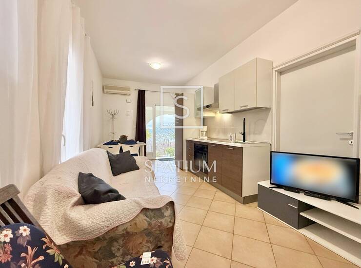 Stan se sastoji od dnevnog boravka s kuhinjom, spavaće sobe i kupaonice. Iz dnevnog dijela izlazi se na prostranu istočnu terasu, dok dodatnu vrijednost daje natkrivena južna terasa s pogledom na more, savršena za boravak na otvorenom tijekom cijele godine.