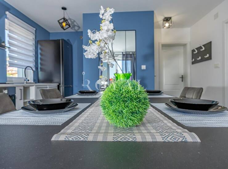 U mirnom i atraktivnom dijelu Kastva iznajmljuje se luksuzno uređen dvoetažni stan površine 90 m². Ova nekretnina predstavlja spoj vrhunske opremljenosti i pažljivo osmišljenog dizajna, prilagođenog suvremenom stilu života. Donja etaža obuhvaća prostranu kuhinju s blagovaonicom te elegantan dnevni boravak koji odiše udobnošću. Na gornjoj etaži smještene su dvije komforne spavaće sobe i luksuzno uređena kupaonica, dok balkon pruža intiman prostor za opuštanje na svježem zraku.