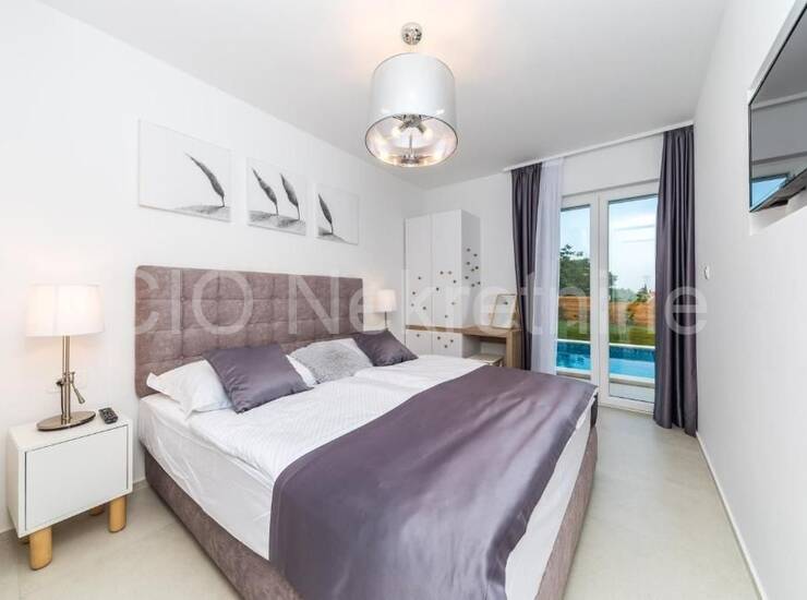 Villa se prostire na 143 m² unutarnjeg stambenog prostora, smještenog na parceli od 400 m², s uređenim dvorištem površine 270 m². U sklopu dvorišta nalazi se bazen od 25 m² sa ležaljkama, idealan za opuštanje i uživanje na otvorenom.