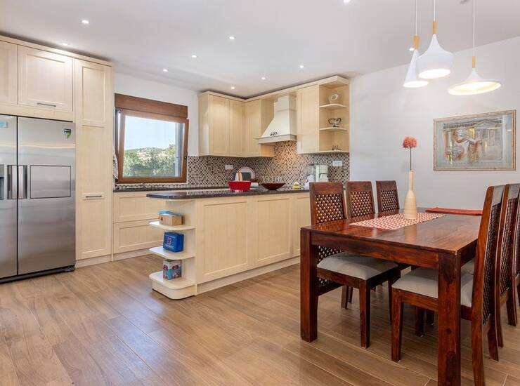 U prizemlju se nalazi kuhinja, blagovaona, dnevni boravak, dječja i spavaća soba, a na katu još dvije sobe i dvije kupaonice.