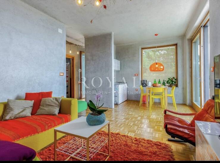 Ima prostranu terasu s pogledom na more i jedno parkirno mjesto.