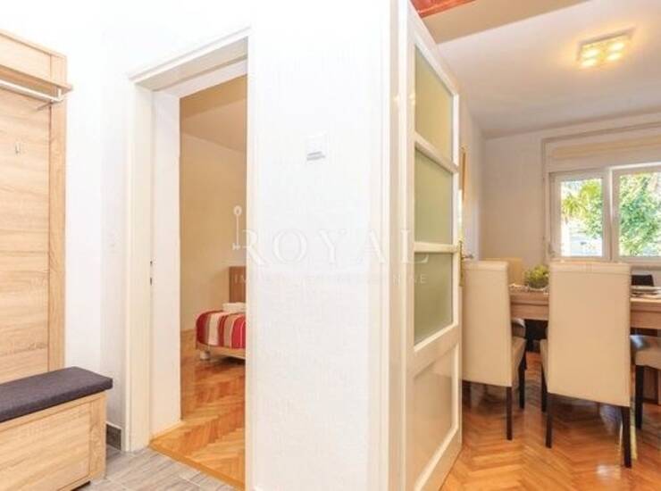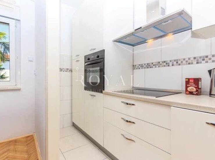 Stan je svijetao, funkcionalnog rasporeda i ugodne atmosfere. Kuhinja je moderno uređena i potpuno opremljena (ugradbena pećnica, ploča za kuhanje, napa, kuhinjski elementi) te je povezana s blagovaonicom i dnevnim boravkom, čineći prostor praktičnim i toplim za obiteljski život.