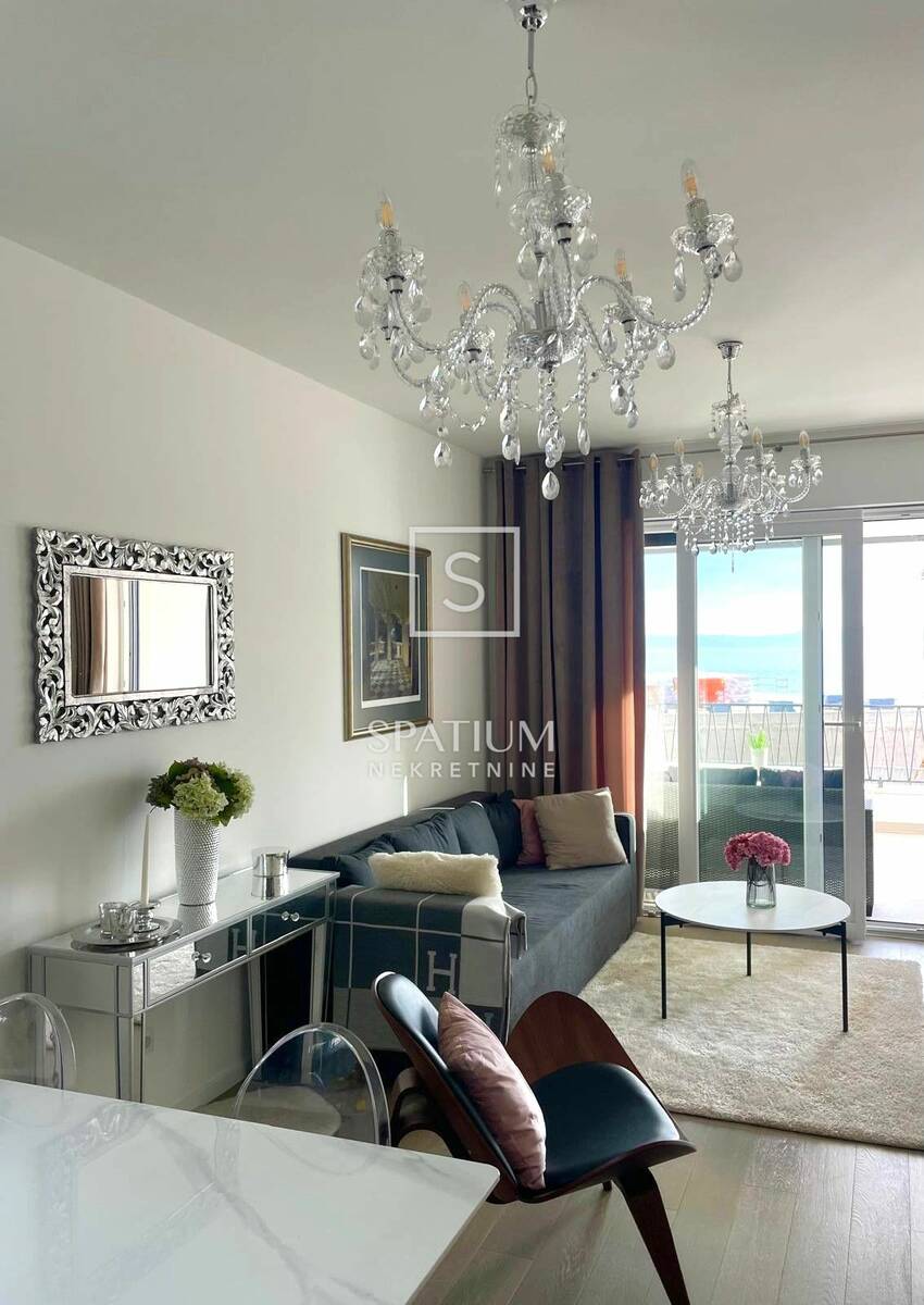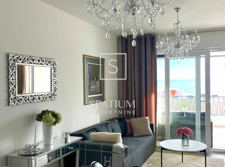 KOSTRENA, u ponudi moderno uređeni stan površine 90,92m2 za dugoročni najam. Stan se sastoji od dvije spavaće sobe, prostranog dnevnog boravka povezanog s kuhinjom i blagovaonom, kupaone i terase s predivnim pogledom na more.