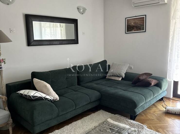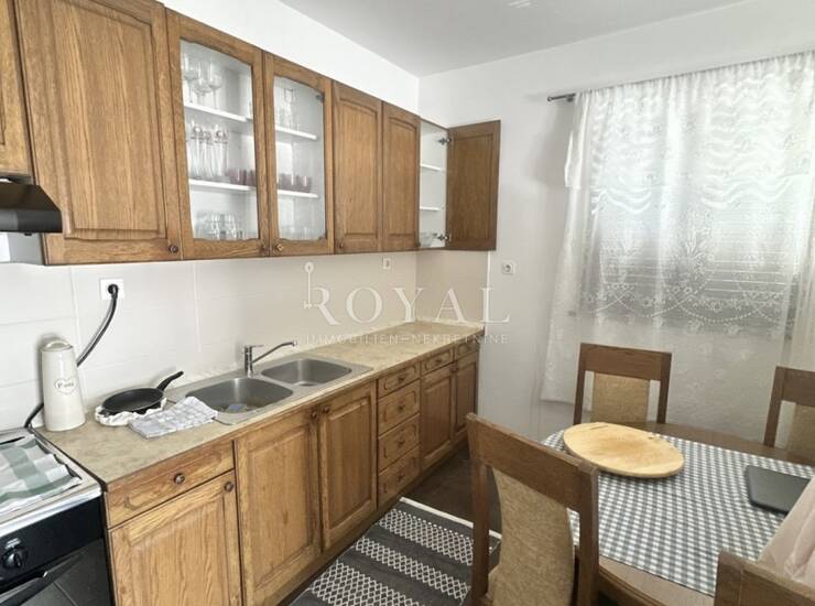 Stan površine 75 m² sastoji se od dvije sobe, kuhinje s blagovaonicom, kupaonice i balkona. Idealan je za poslovne ljude ili radnike koji traže dugoročan i miran smještaj.