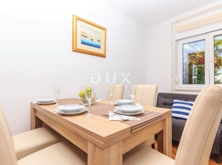 KOSTRENA, ŠODIĆI- namješten stan 46m2, DB+2S, prizemlje, 250m od mora + okoliš za najam