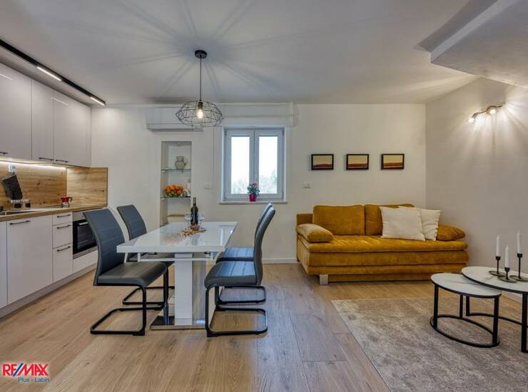 Daje se u dugoročni najam novouređena obiteljska kuća smještena je u mirnom naselju nedaleko od Labina.