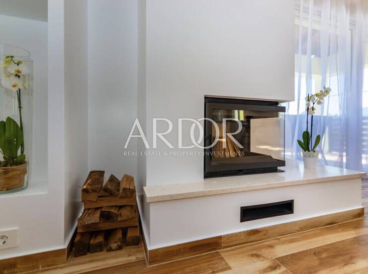 Sve prostorije opremljene su klima uređajima, dok podno grijanje osigurava ravnomjernu toplinu tijekom zimskih mjeseci. U dnevnom boravku nalazi se kamin koji se može koristiti prema potrebi. Stanarima su na raspolaganju privatni bazen s ležaljkama te roštilj i uređeni vanjski prostor namijenjen boravku i druženju.
