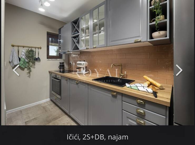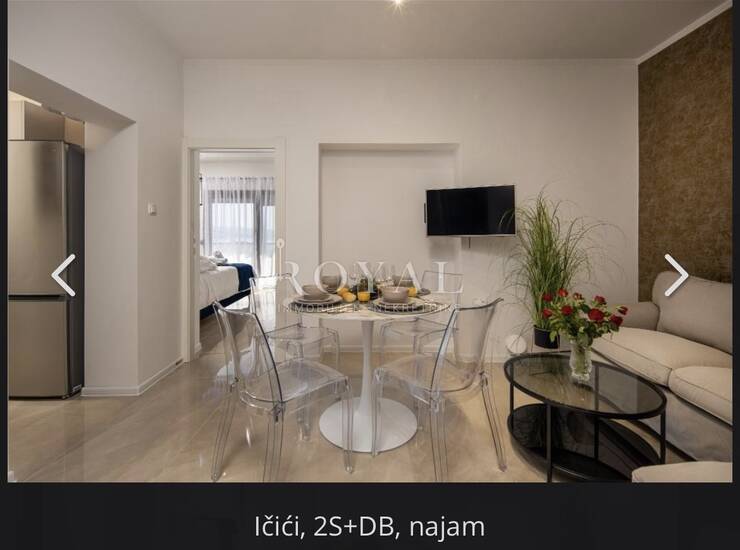 Iznajmljuje se lijepo uređen stan u Ičićima, u novijoj zgradi (2022.), površine 65 m². Stan se nalazi na 1. katu i sastoji se od:
