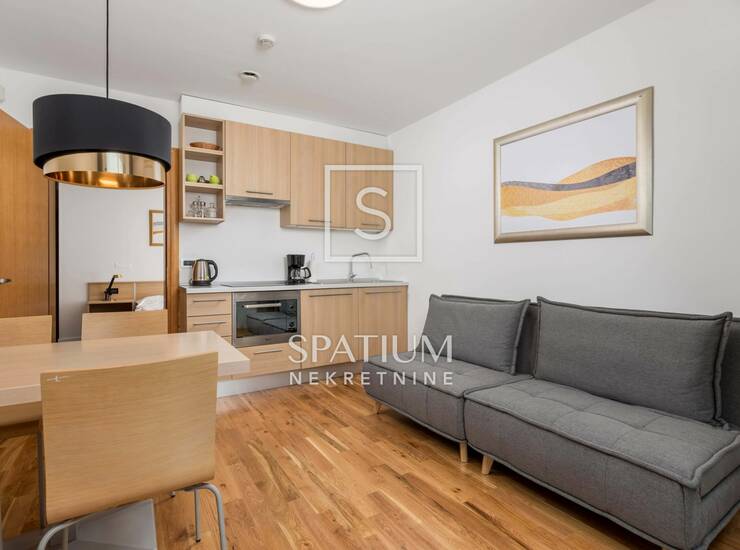 IČIĆI, u ponudi je jednosoban apartman blizu mora s osiguranim vanjskim parkirnim mjestom za dugoročni najam. Apartman je u potpunosti opremljen i namješten za ugodan cjelogodišnji boravak na obali. Objekt ima sustav grijanja i ventilacije putem dizalice topline. Apartman ima jednu spavaću sobu s balkonom, kupaonicu i glavnu stambenu prostoriju koja dijeli funkciju kuhinje, blagovaonice i dnevnog boravka iz kojeg je izlaz na osunčanu lođu s koje se pruža predivan pogled na more. Uz ugovoreni iznos najamnine, najmoprimac plaća dodatno mjesečne režije. Apartmanu pripada jedno vanjsko parkirno mjesto. Objekt ima dizalo. Na okućnici je smješten bazen sa sunčalištem koji je dostupan za korištenje. Apartman je na prvom katu. Nalazi se na pješačkoj udaljenosti do mora, marine i centra Ičića.