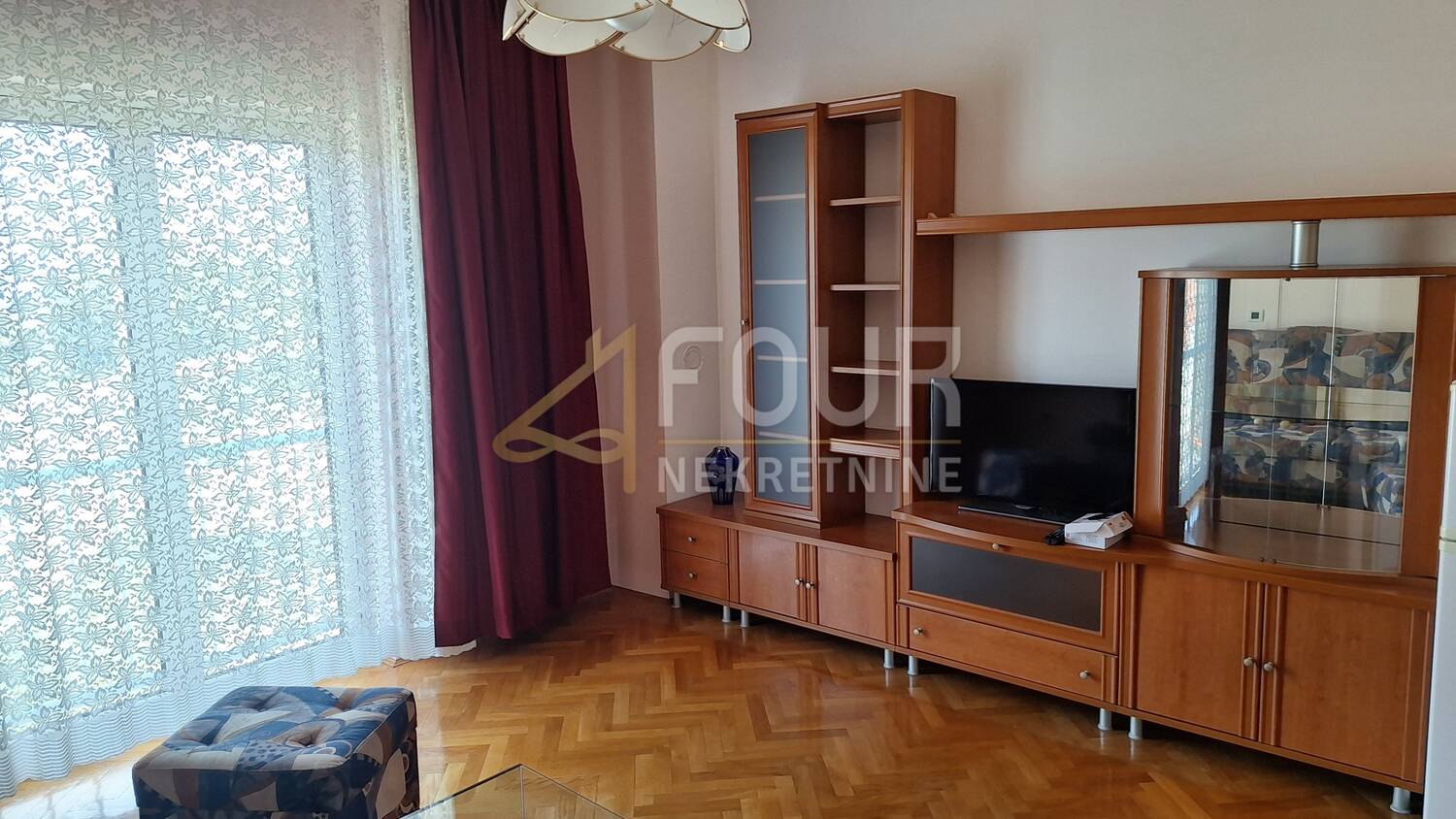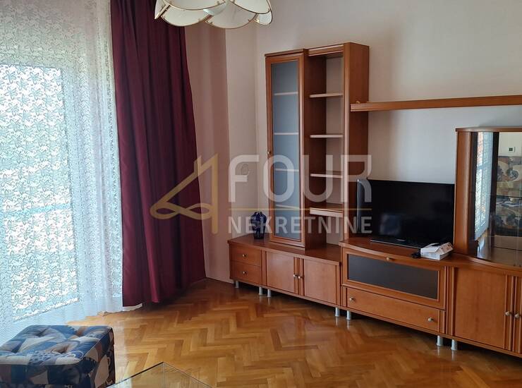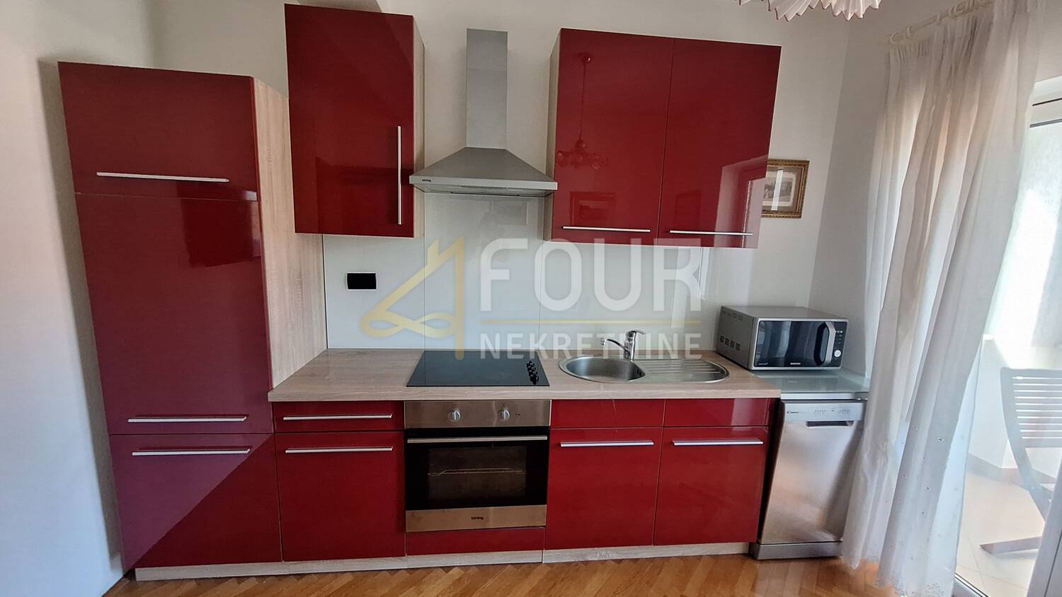 Iznajmljuje se stan za dugoročni najam u Poljanama. Smješten je na prvom katu kuće s zasebnim ulazom i pruža predivan pogled na more. Namješten, uredan, s novom kuhinjom opremljenom perilicom posuđa, mikrovalnom pećnicom, frižiderom i novom pećnicom s pločom za kuhanje. Iz kuhinje se izlazi na zatvorenu lođu koja se može po potrebi otvoriti. Spavaća soba opremljena je velikim ormarom, a izlaz na prostranu lođu omogućava uživanje u pogledu na Kvarner. Ima dvije kupaonice i klima uređaj za grijanje i hlađenje. Na okućnici je dostupan roštilj za korištenje, a tu je i jedno vanjsko parkirno mjesto.