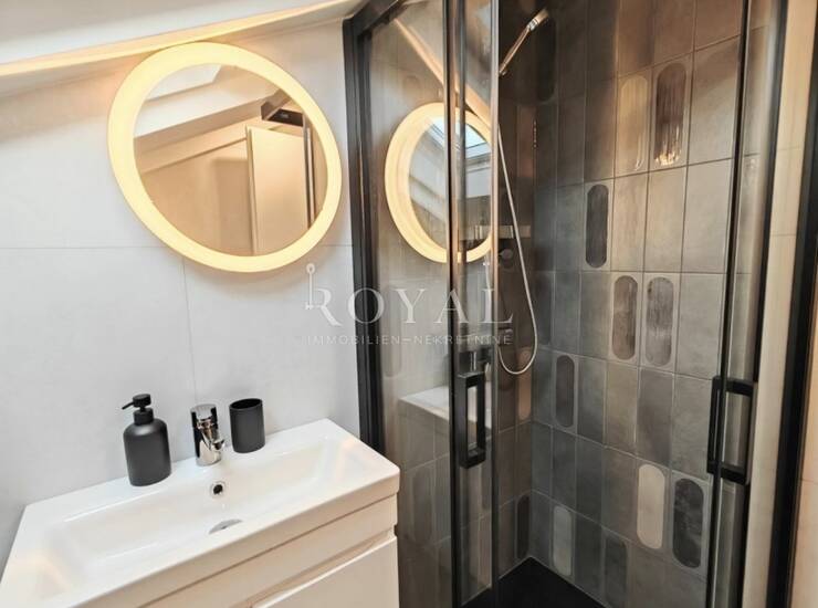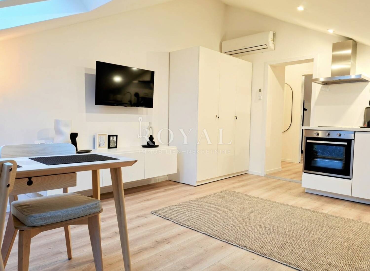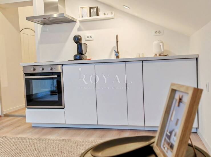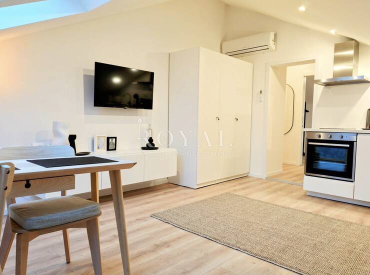 Dugoročni najam modernog i potpuno obnovljenog stana u samom centru Opatije. Smješten u elegantnoj i uredno održavanoj opatijskoj vili, ovaj svijetao stan odiše ugodom i stilom. Sastoji se od hodnika, dnevne sobe s kuhinjom, spavaće sobe i kupaonice, a na korištenje je dostupna i zajednička terasa idealna za opuštanje. Grijanje i hlađenje omogućeno je putem dvije klima jedinice, što osigurava ugodnu temperaturu tijekom cijele godine.
