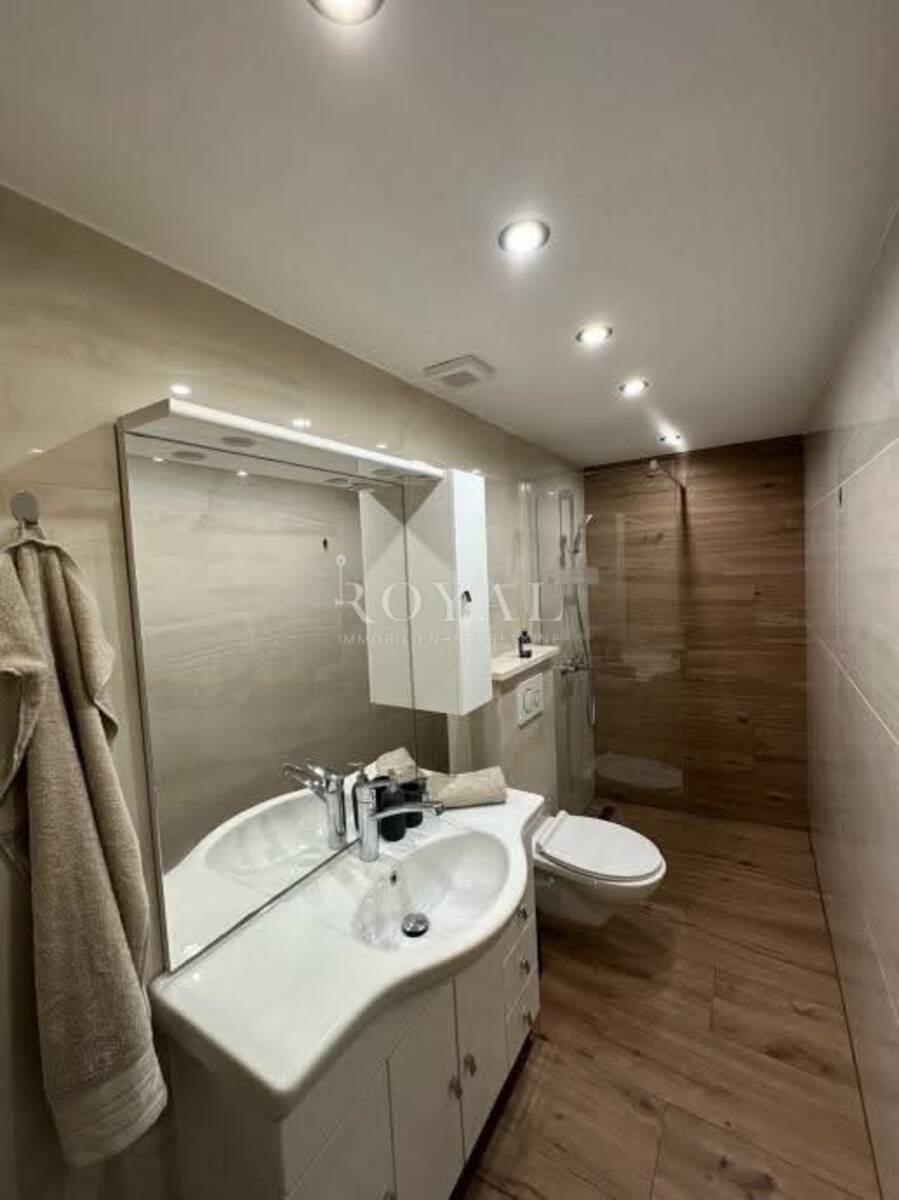 Dodatnu razinu komfora pruža podno grijanje u kupaonici, dok su grijanje i hlađenje stana osigurani putem klima uređaja. Uz stan dolazi i vlastito parkirno mjesto.