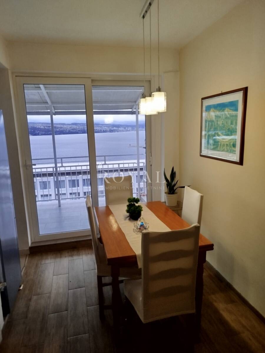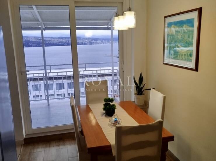 Posebna vrijednost ove nekretnine je velika terasa s otvorenim panoramskim pogledom na more i cijeli Kvarner, u kojem možete uživati tijekom cijelog dana zahvaljujući južnoj orijentaciji stana. Stan je izuzetno svijetao, prozračan i sunčan.
