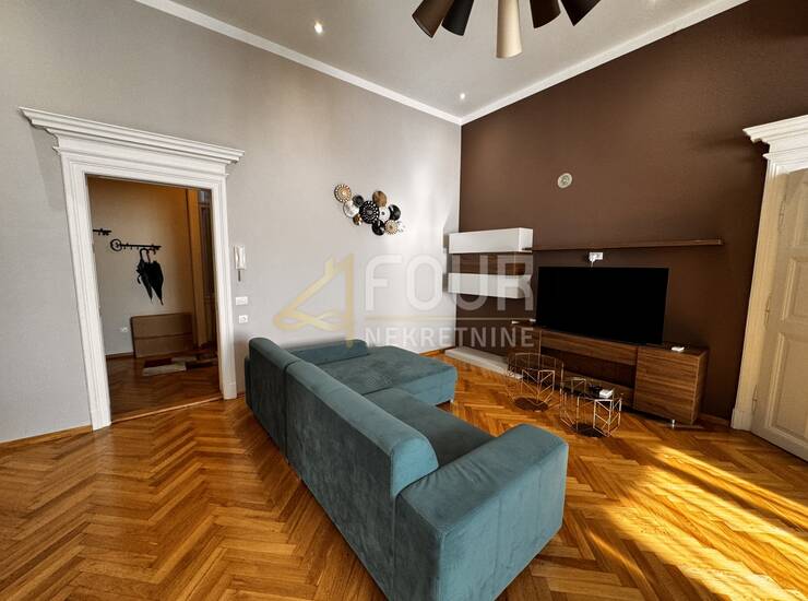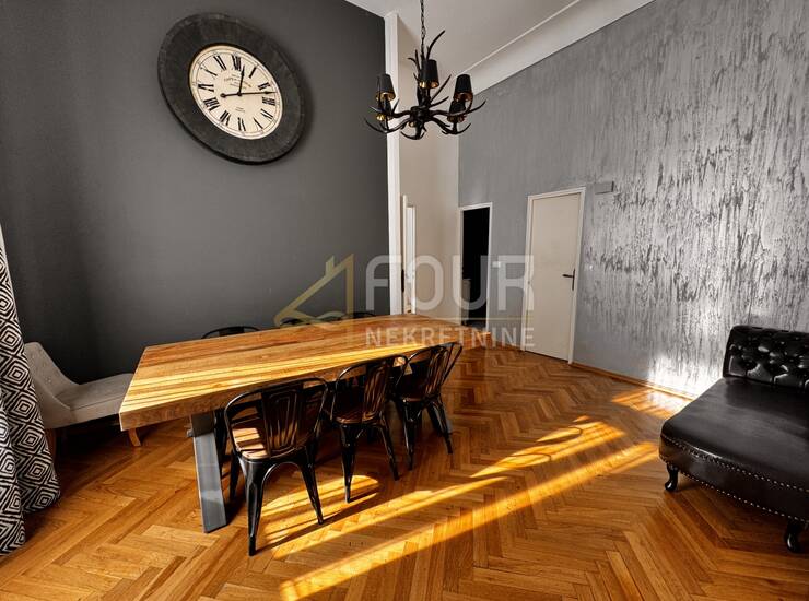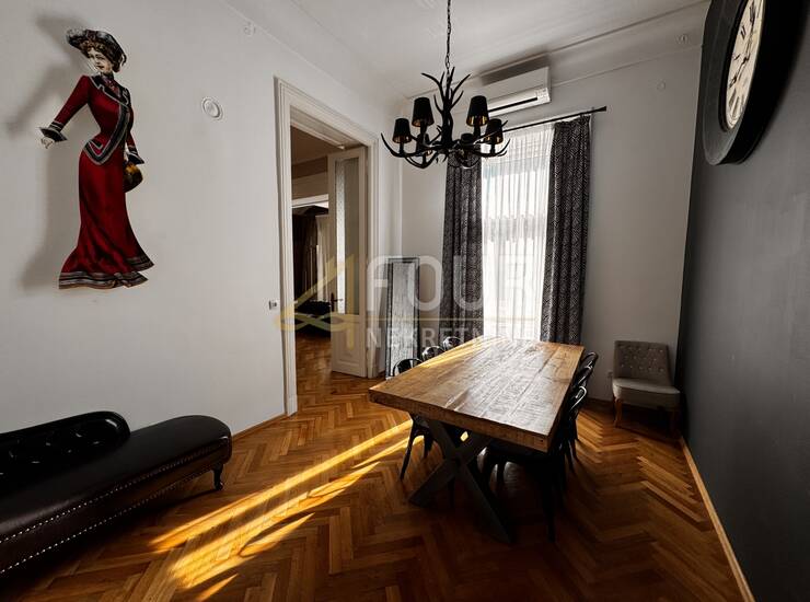 Iznajmljuje se prostran i elegantno uređen stan smješten u prizemlju stare vile nedaleko od centra Opatije, na svega 120 metara od mora. Ukupne površine 162,25 m2, ovaj stan odiše profinjenošću i udobnošću, s karakterističnim visokim stropovima i obiljem prirodnog svjetla koje ispunjava prostor.