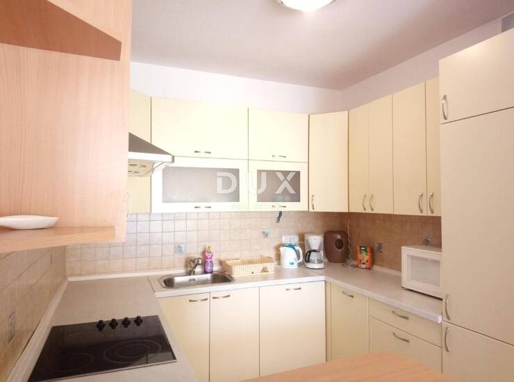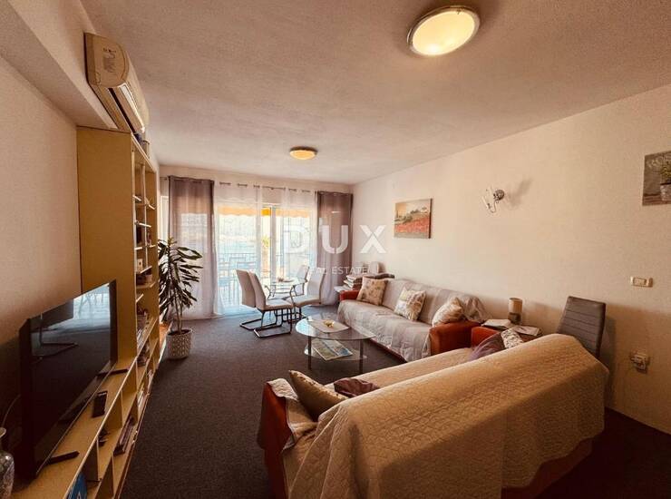 Stan je lijepo uređen i potpuno namješten, a sastoji se od prostrane dnevne sobe povezane s kuhinjom i blagovaonicom, hodnika, dvije spavaće sobe te kupaonice i dodatnog malog wc-a. Posebna vrijednost ovog stana je velika terasa s koje se pruža impresivan pogled na Kvarnerski zaljev. Prekrasne klizne stijene osiguravaju obilje svjetlosti i ugođaj mediteranskog načina života. Južno orijentirana spavaća soba također nudi pogled na more i direktan izlaz na terasu.