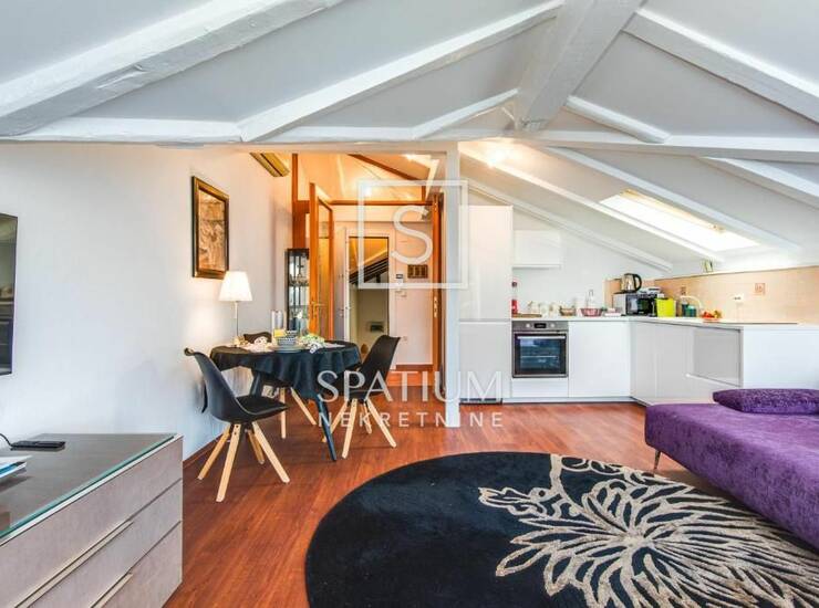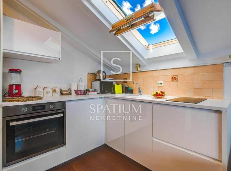 Sastoji se od dnevnog boravka s kuhinjom, spavaće sobe i kupaonice. Funkcionalan raspored prostora čini ga idealnim za samce ili parove.