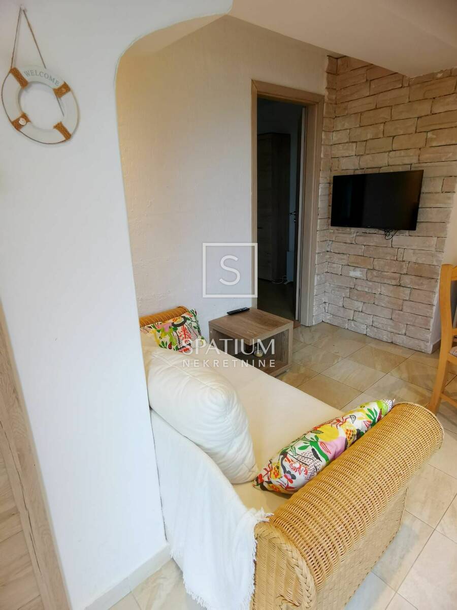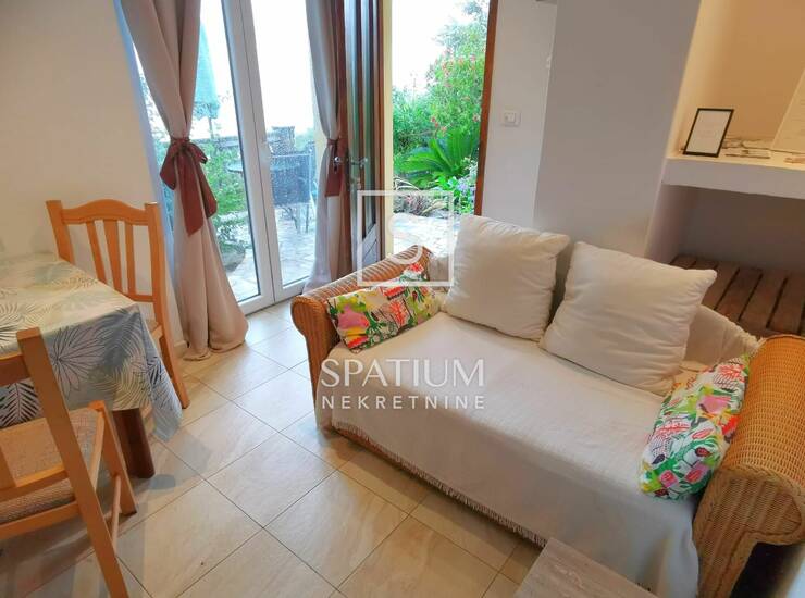 Pripada mu i terasa s prekrasnim pogledom na kvarnerski zaljev. Kompletno je namješten.