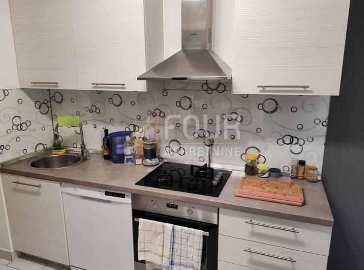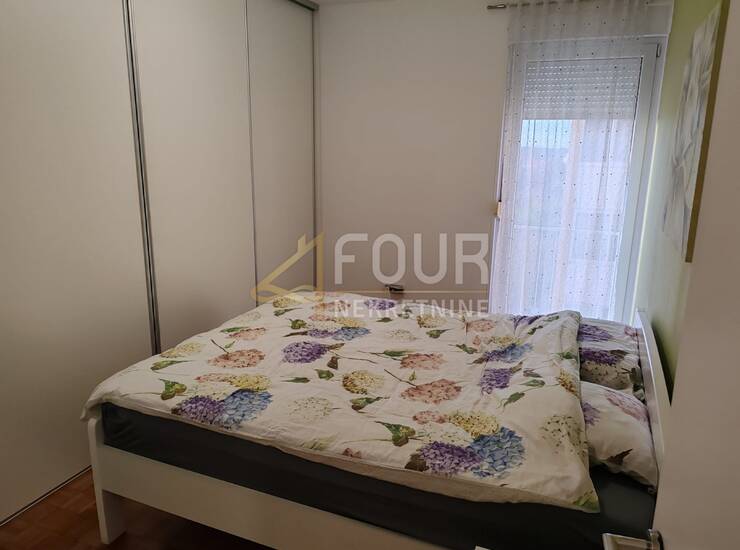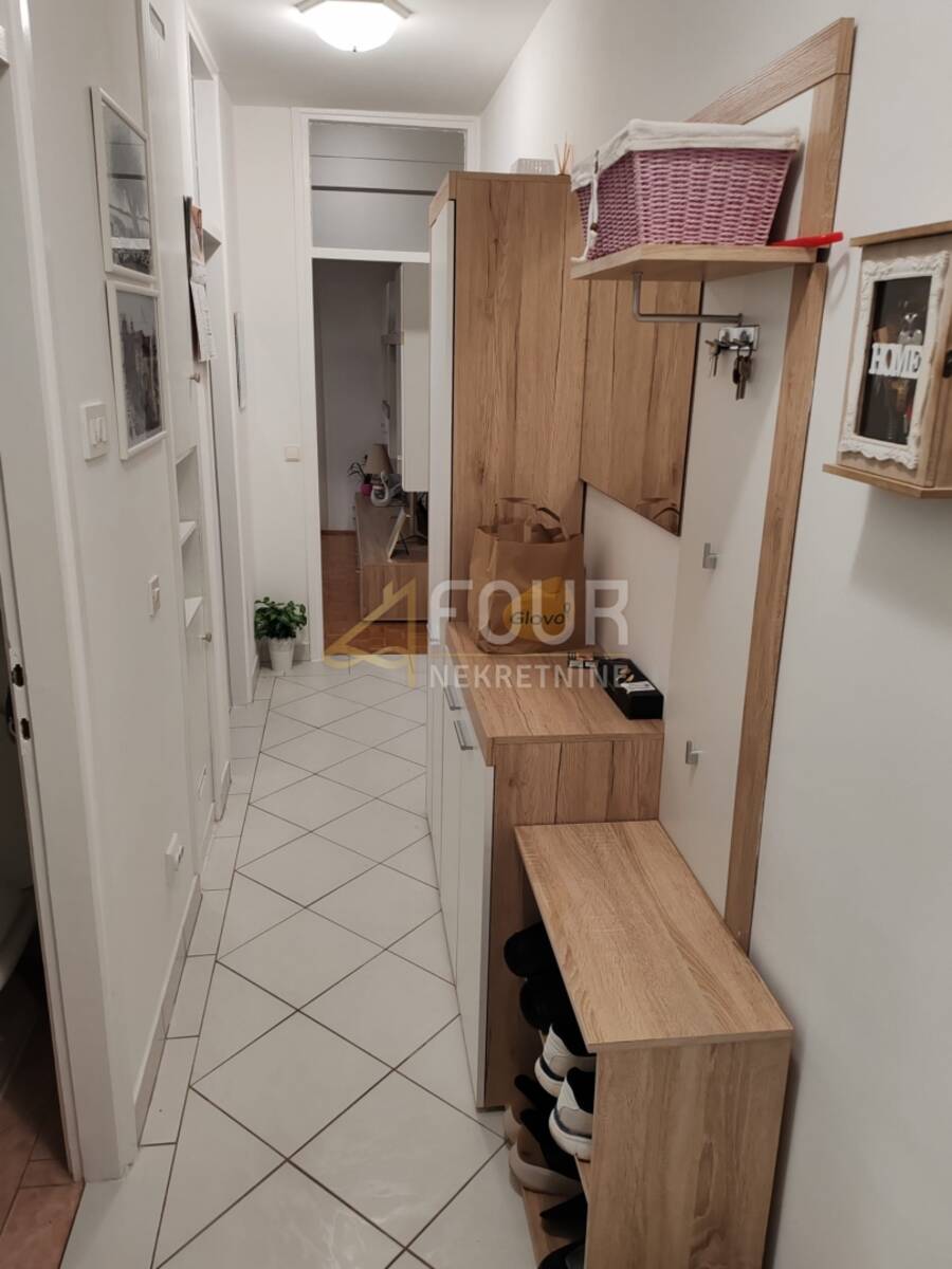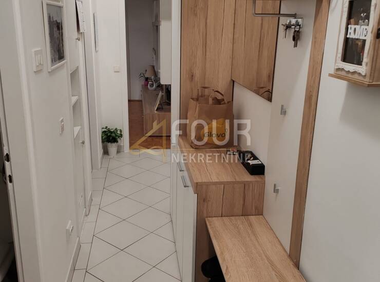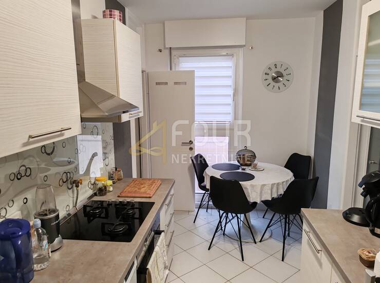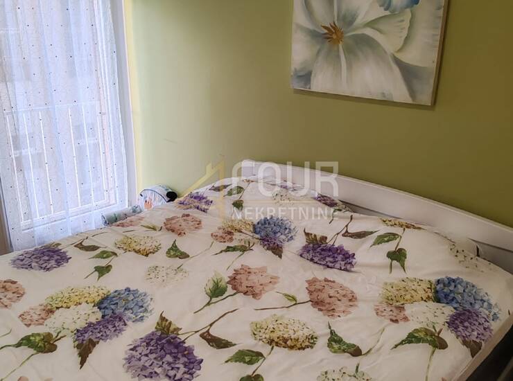 Adaptiran je 2022. godine i obuhvaća oko 60 m2 pažljivo uređenog prostora. Ulaz vodi u hodnik iz kojeg se dolazi do kupaonice te dvije spavaće sobe, od kojih jedna ima francuski balkon. Dnevni boravak pruža izlaz na zatvorenu lođu, dok kuhinja s blagovaonom također ima vlastiti francuski balkon. Opremljen je klimom i PVC stolarijom, a u okolici je dostupan besplatan javni parking.