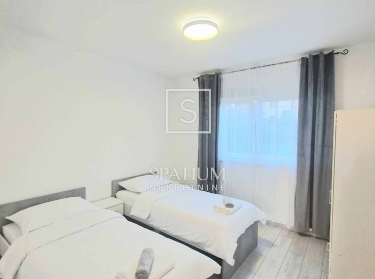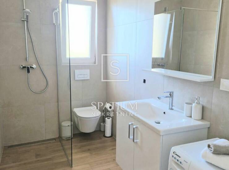 PULA, u ponudu smo dobili dvosoban stan površine 51.82m2 za najam. Novogradnja koja je spremna za useljenje odmah. Udaljen je 1.8km zračne linije od mora. Sastoji se od dvije spavaće sobe sa po dva kreveta, dnevnog boravka, kuhinje i kupaone te ima terasu.