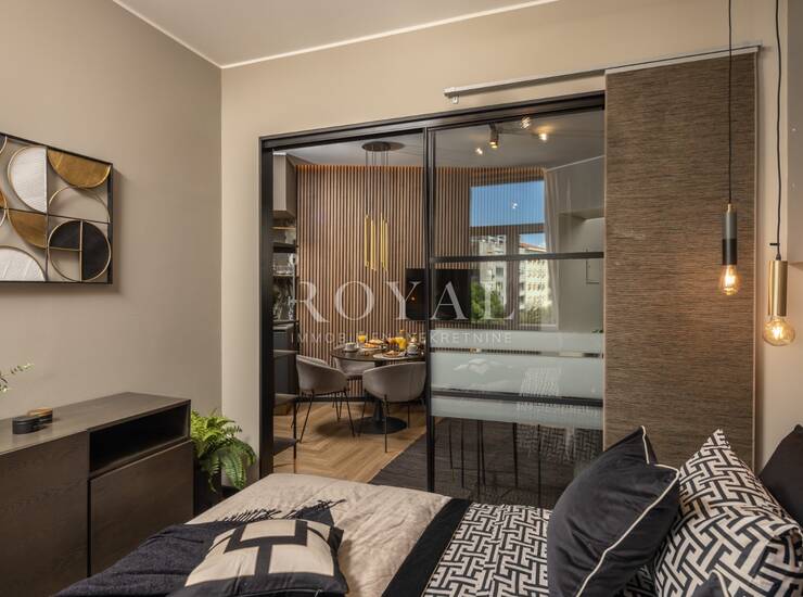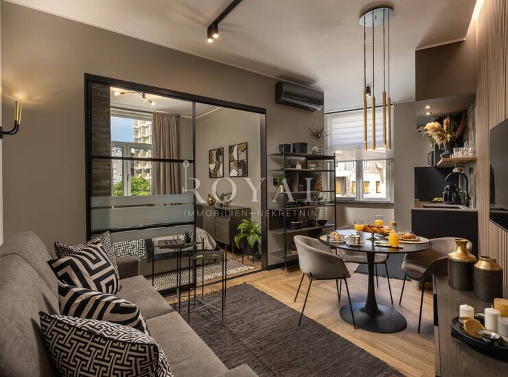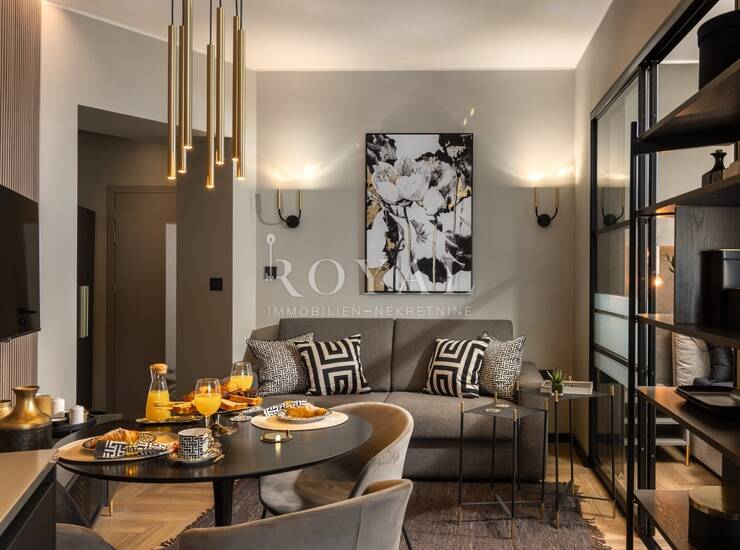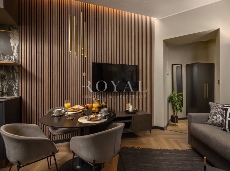 U najam se daje luksuzno uređen apartman površine 37 m², moderno dizajniran, potpuno namješten i kompletno opremljen. Apartman se nalazi na Potoku, u blizini centra grada, na trećem katu stambene zgrade, s ugovorom do 01.07.2026.