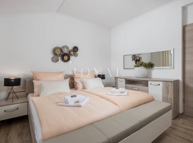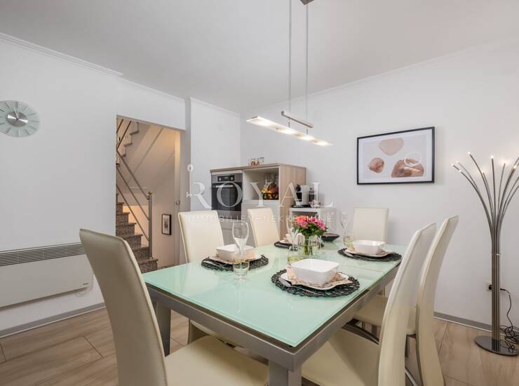 Kuća je potpuno opremljena i moderno namještena, s lijepim rasporedom i dvoetažnim stanom uređenim s mnogo ukusa. Na raspolaganju je natkrivena terasa s roštiljem, idealna za opuštanje nakon radnog dana. Sve u kući je novo i kvalitetno održavano.