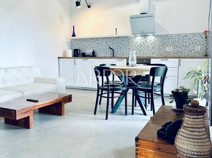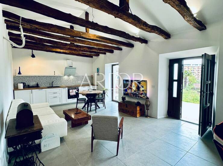 Zamet, iznajmljuje se vrlo šarmantan stan, lijepo uređen, površine 65m2, a sastoji se od dvije spavaće sobe, dnevnog boravka, kuhinje, vešeraja i kupaonice. Stan se nalazi u prizemnoj privatnoj kući i raspolaže okućnicom površine cca 1000m2 sa velikim privatnim parkingom. Smješten je na vrlo traženoj lokaciji, u mirnom dijelu, sa svim potrebnim sadržajima na pješačkoj udaljenosti.