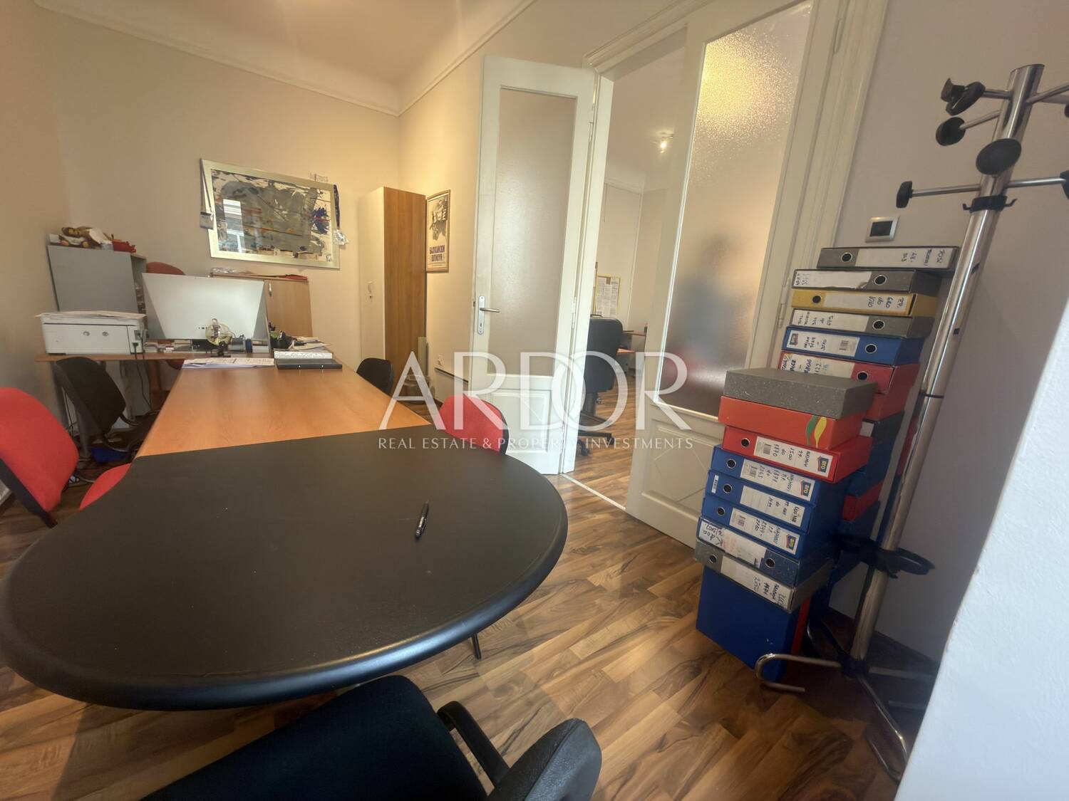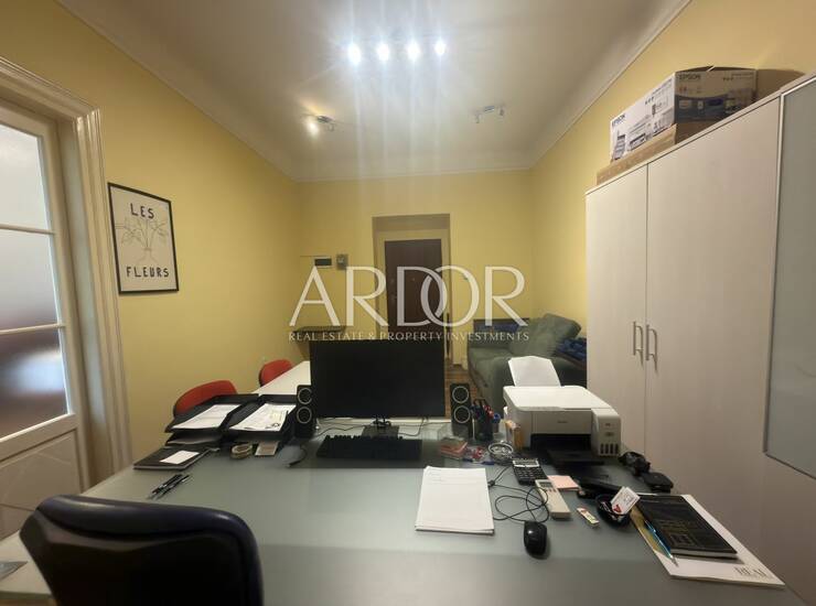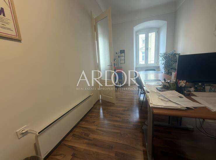 U ponudi je poslovni prostor površine 105 m² smješten na 1. katu stambeno-poslovne zgrade u samom centru Rijeke, u atraktivnoj pješačkoj zoni s izravnim pogledom na kazalište i park.