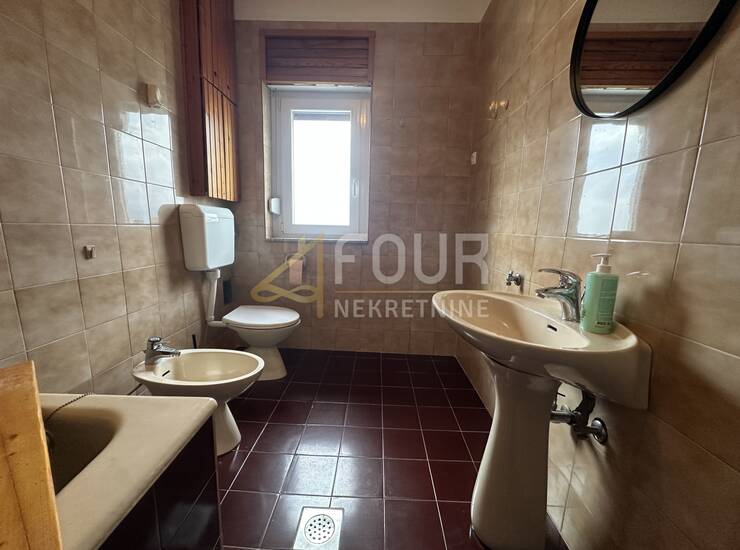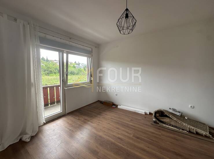 Opremljen je PVC stolarijom, podovi su kombinacija laminata i pločica, a grijanje je klasično.
