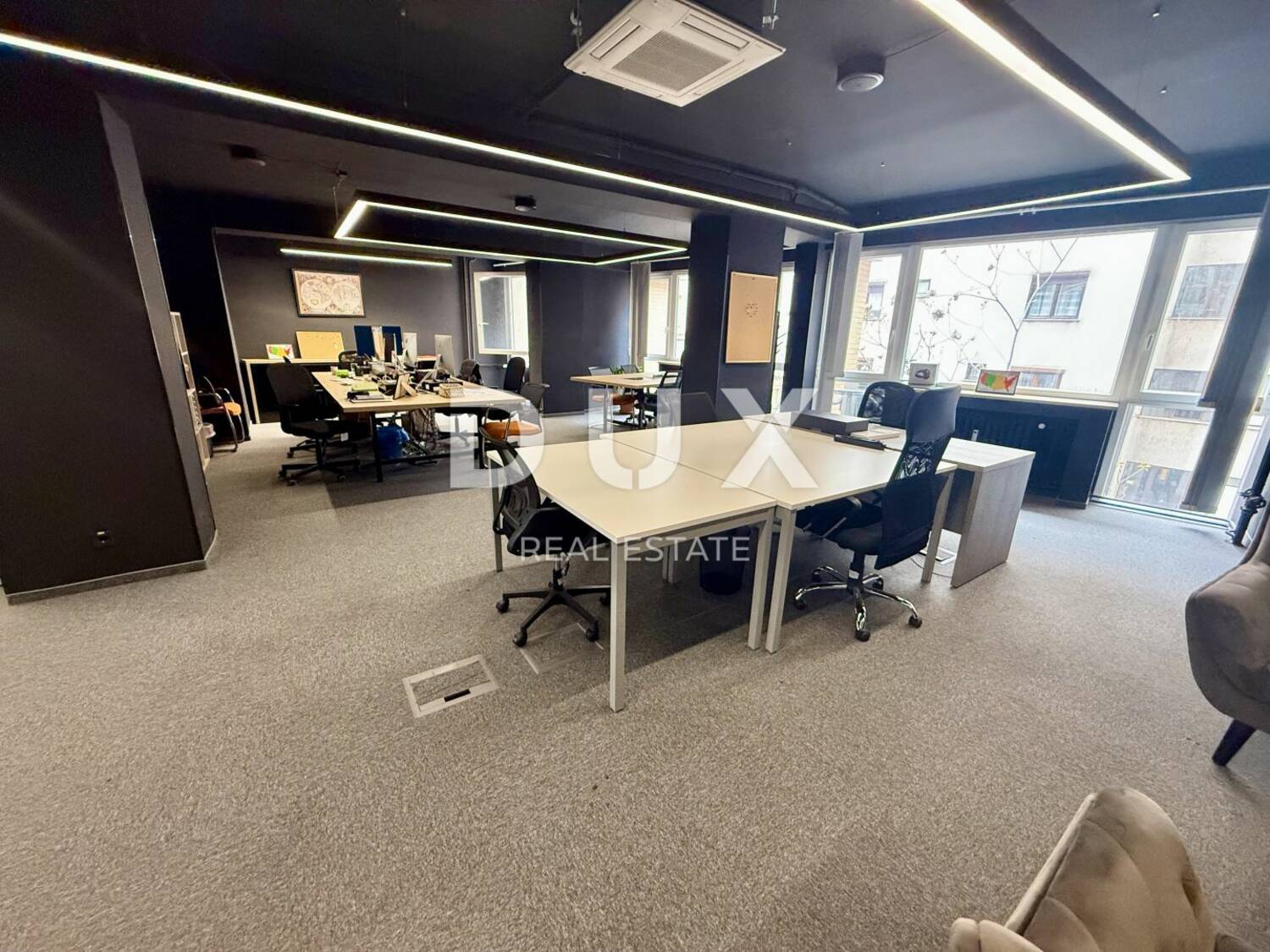 Namjena prostora je uredski sa sveukupno 7 prostorija, kuhinjom, manjim dnevnim boravkom, kupatila i dva spremišta. Kompletno je uređen i može primiti 40ak osoba. Grijanje i hlađenje uređeno na struju. Blizina dvaju većih parkirališta za djelatnike. Lokacija savršena na samo 10 minuta hoda od Korza!