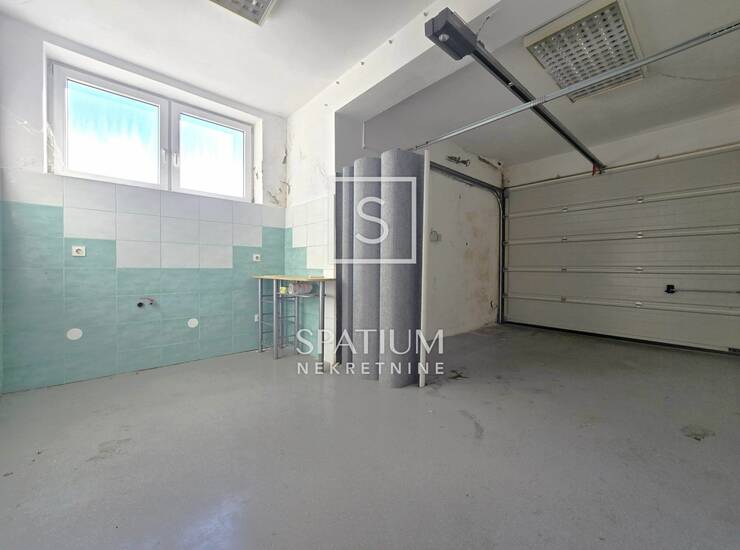 ŠKURINJE, u ponudu za dugoročni zakup dobili smo prizemni prostor površine 100 m2. Osim dvije garaže namijenjene skladištenju robe ili radionici tihe djelatnosti, tu se nalazi i kupaonica, spremište, veliko predsoblje i kancelarija. Pristup je moguć manjem kamionu odnosno dostavnom vozilu.