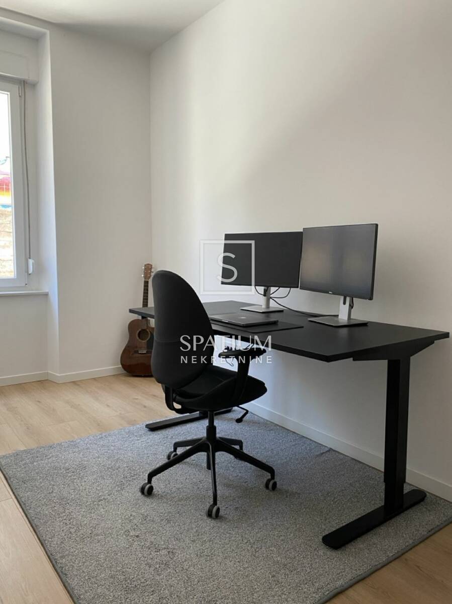 BELVEDER, u ponudu smo dobili novouređeni, moderan dvosobni stan koji se nalazi na odličnoj lokaciji, svega pet minuta hoda od Korza i užeg centra grada. Stan, površine 65m2, sastoji se od prostranog open space dnevnog boravka, koji je povezan s kuhinjom izrađenom po mjeri. Kuhinja je opremljena najnovijim kuhinjskim aparatima, uključujući Samsung hladnjak, Whirlpool pećnicu i indukcijsku ploču, kao i Klarstein vinski hladnjak s dvostrukom temperaturnom zonom za bijela i crna vina. U sklopu kuhinje nalazi se i otok s blagovaonskim stolom, koji dodatno naglašava funkcionalnost prostora. Dnevni boravak je osvijetljen i prozračan, a opremljen je udobnom kutnom garniturom na razvlačenje, 4K televizorom i dodatnim monitorom, pružajući savršen spoj udobnosti i modernih tehnoloških rješenja. Kupaonica je uređena u elegantnom stilu te sadrži walk-in tuš, široki umivaonik i WC, dok su Samsung perilica i sušilica rublja praktično smještene za maksimalnu funkcionalnost. Glavna spavaća soba opremljena je velikim bračnim krevetom s noćnim ormarićima te prostranim kliznim garderobnim ormarom. Druga soba uređena je kao kućni ured, ali također nudi mogućnost smještaja dva dodatna ležaja, prilagođavajući se potrebama budućih stanara. Stan je opremljen podnim grijanjem u svim prostorijama, dok klima uređaj osigurava ugodnu temperaturu tijekom cijele godine. Većina rasvjetnih tijela prilagodljiva je jednostavnim dodirom prekidača, što omogućuj