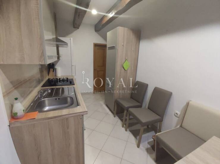 Iznajmljuje se potpuno namješten i opremljen stan površine 30 m², smješten u prizemlju stambene zgrade. Stan ima poseban ulaz te pripadajuću natkrivenu terasu, što osigurava dodatnu privatnost i ugodan prostor za boravak.