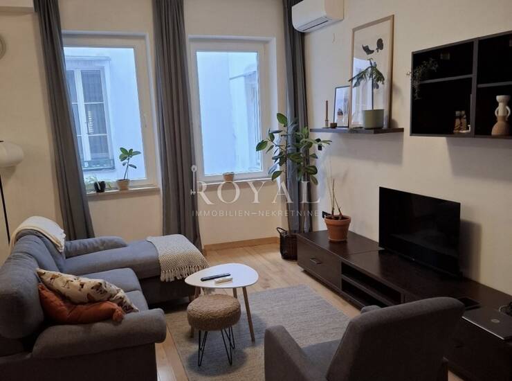 U ponudi je lijepo uređen i u potpunosti namješten stan površine 72 m², smješten na 4. katu stambene zgrade u užem centru grada, svega minutu hoda od Korza.