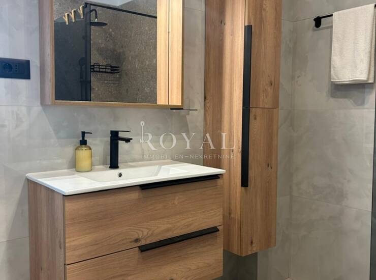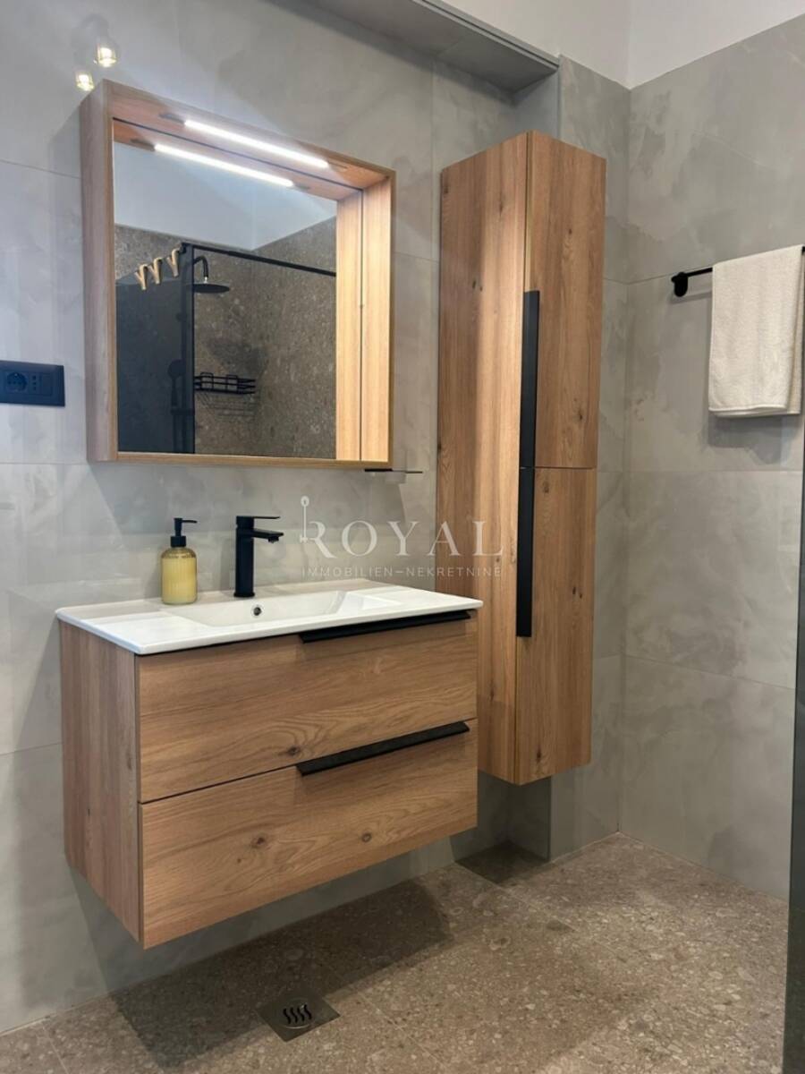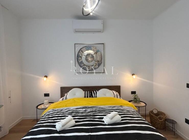 Stan se sastoji od tri spavaće sobe, a svaka je opremljena klima uređajem. Kupaonica je moderna i prostrana, s podnim grijanjem koje pruža dodatnu udobnost.