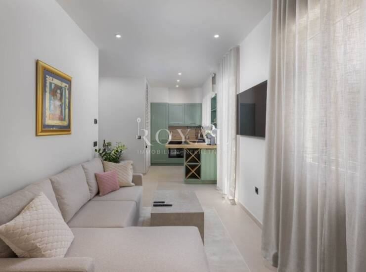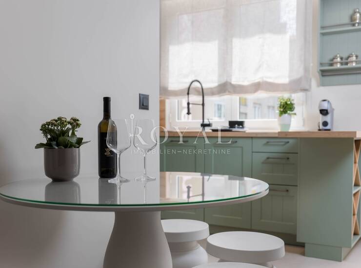 Iznajmljuje se potpuno novouređen i moderno opremljen jednosoban stan površine 40 m², smješten u samom centru Rijeke, svega cca 300 m od Korza.
