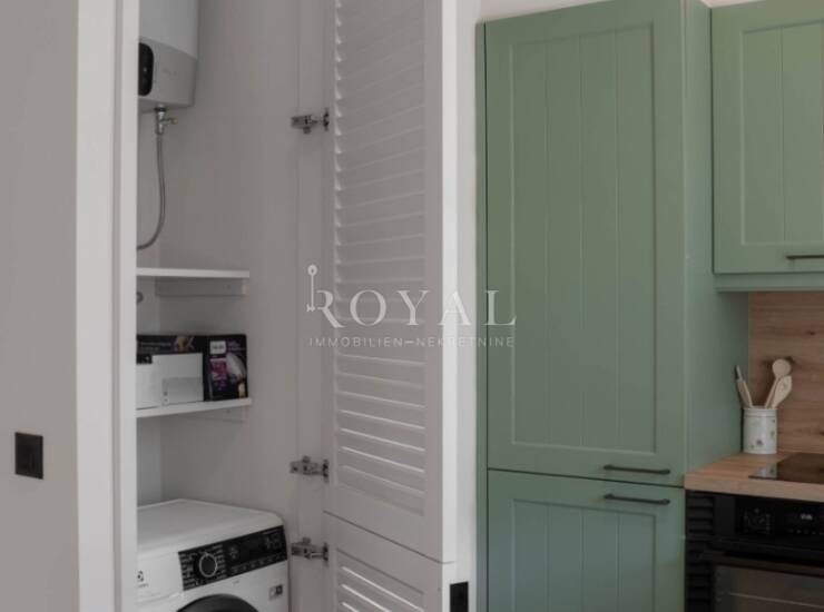 Stan je kompletno opremljen svim potrebnim aparatima, uređajima, posuđem i posteljinom. Opremljen je klimom i podnim grijanjem te je spreman za useljenje bez dodatnih ulaganja.