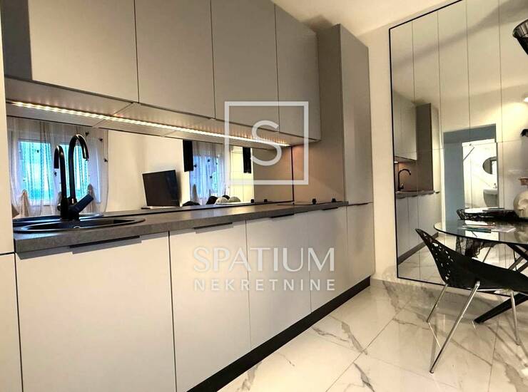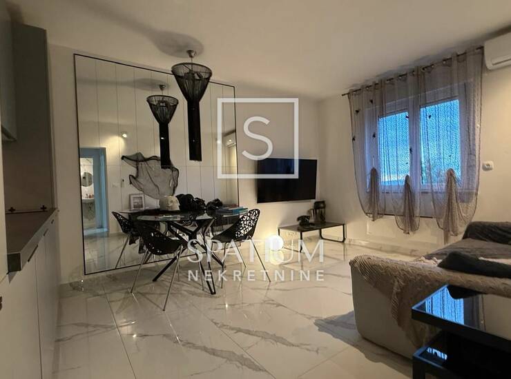 DONJA VEŽICA, u ponudu smo dobili stan površine 29,56 m2 koji je u potpunosti adaptiran i moderno uređen. Sastoji se od kuhinje izrađene po mjeri s blagovaonskim dijelom, dnevnog boravka te kupaonice. Prostor je maksimalno iskorišten i opremljen kvalitetnim materijalima, što mu daje suvremen izgled i ugodnu atmosferu.