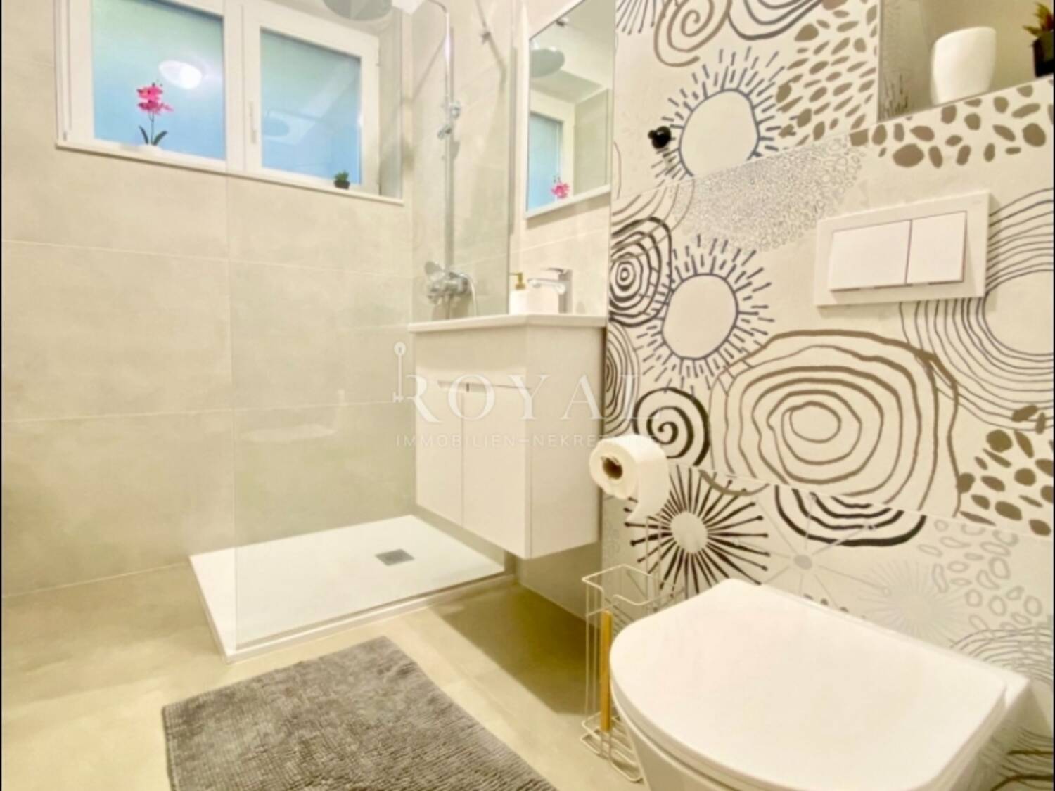 Prostor je izvrsno iskorišten. Dnevni boravak je povezan s opremljenom kuhinjom i blagavaonicom u modernu cjelinu. Ima dvije spavaće sobe, jedna sa bračnim krevetom, a druga sa pristupom na balkon. Obje sobe imaju velike ormare i radni stol. Kupaonica sa novim sanitarijama i “walk in” tušem.