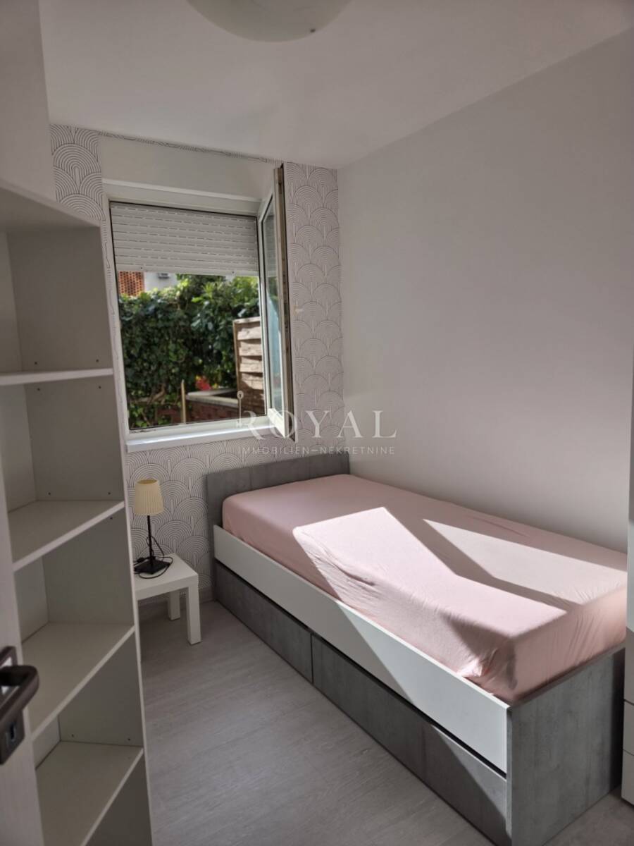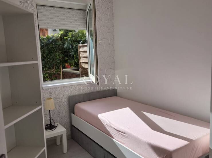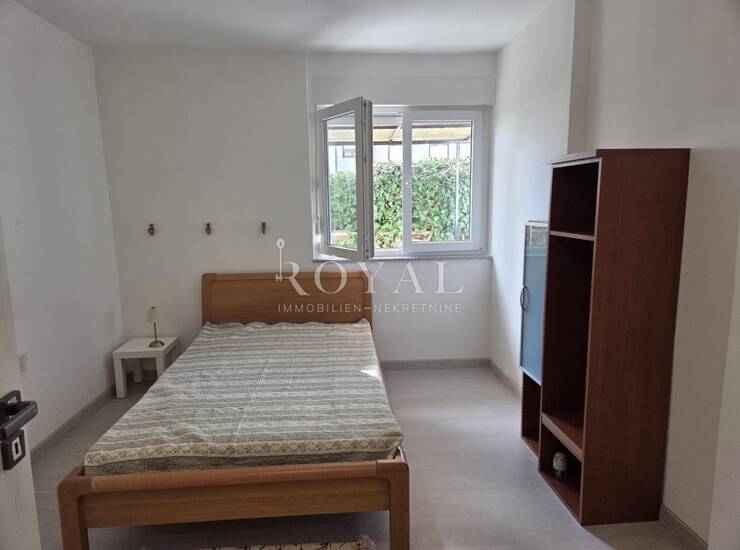 Najam stana, Krnjevo, 50m2, dvije spavaće sobe, dnevni boravak, blagovaona i kuhinja, prizemlje sa zasebnom terasom. U zgradi postoji zajednička unutarnja garaža. Mjesečno 600€.