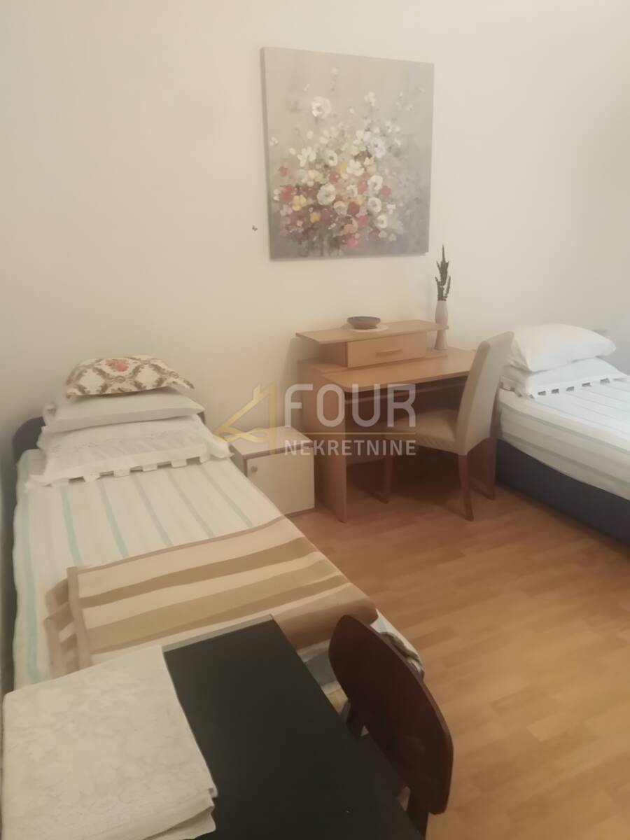 Stan ukupne površine 65 m2 sastoji se od tri sobe i dnevnog boravka s kuhinjom te je orijentiran na istok i zapad, što mu osigurava obilje dnevnog svjetla tijekom cijelog dana. Opremljen je PVC stolarijom, klimom te radijatorima, a u potpunosti je namješten i spreman za useljenje. Pogodan je za najam radnicima ili drugim ozbiljnim najmoprimcima.