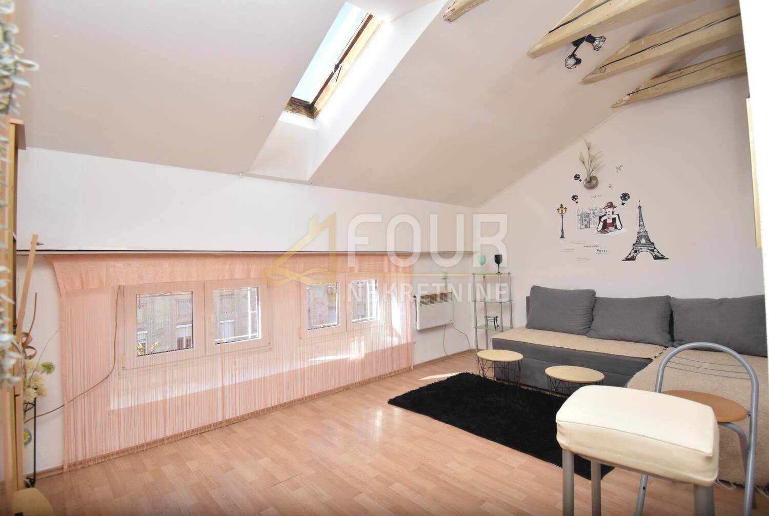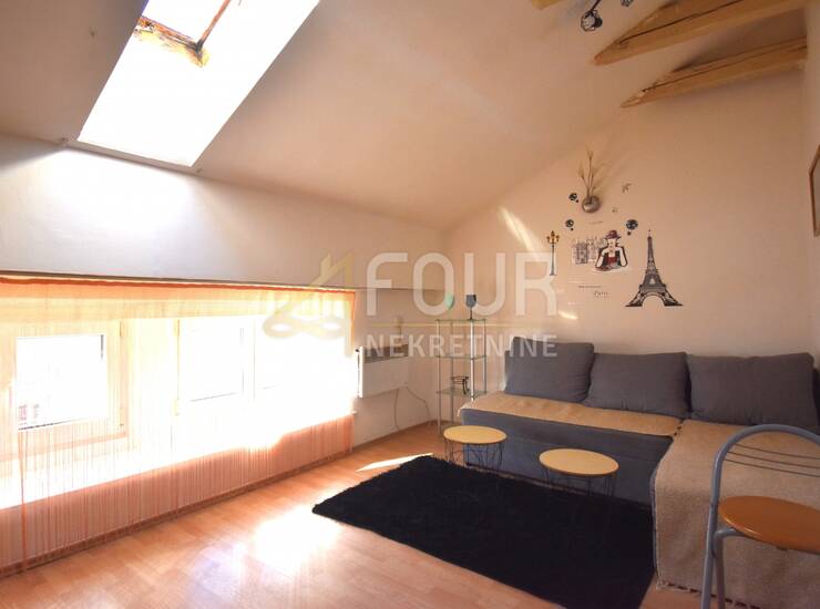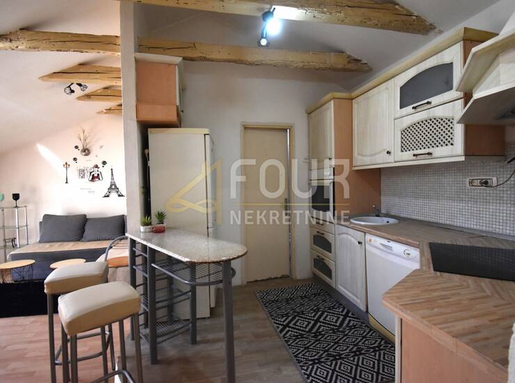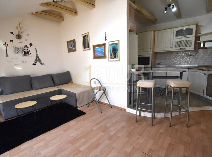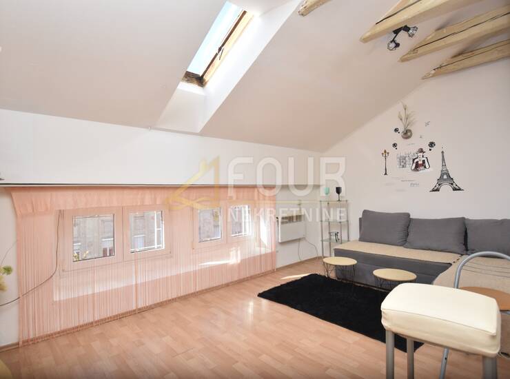 Iznajmljuje se potpuno opremljen i namješten stan u visokom potkrovlju zgrade, površine 47,41 m2.